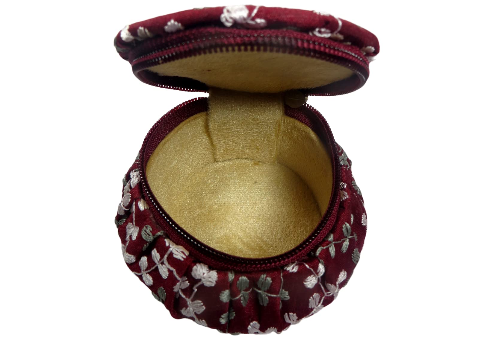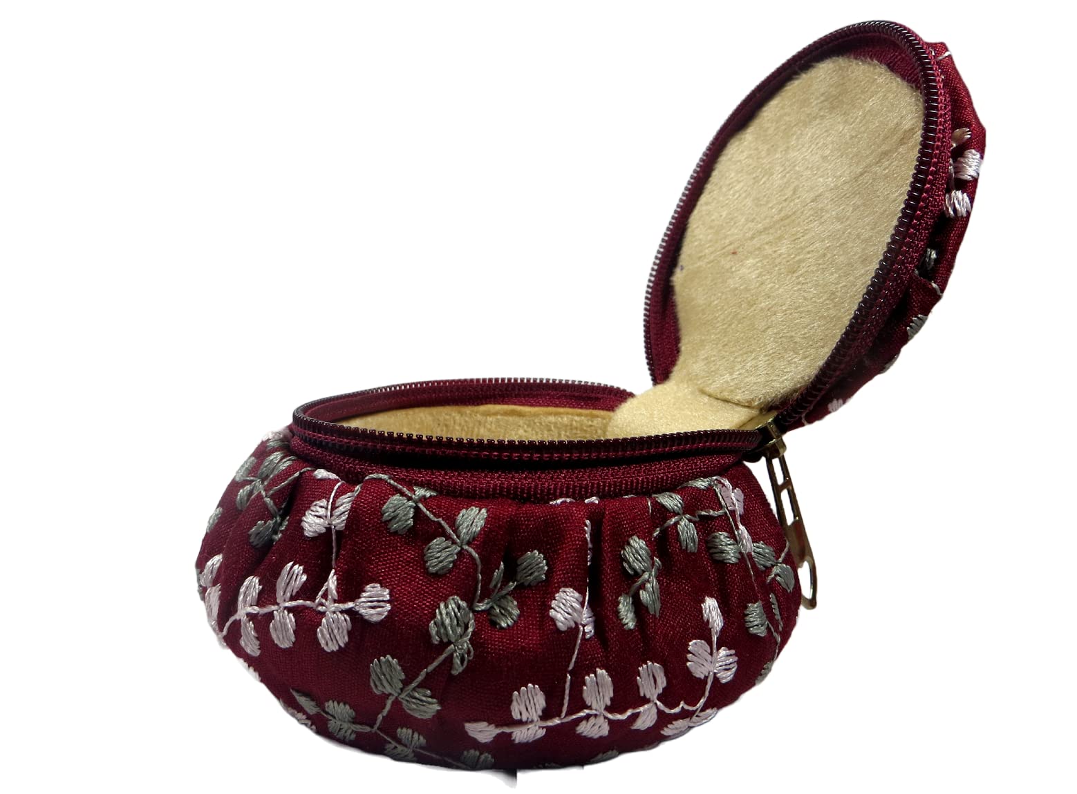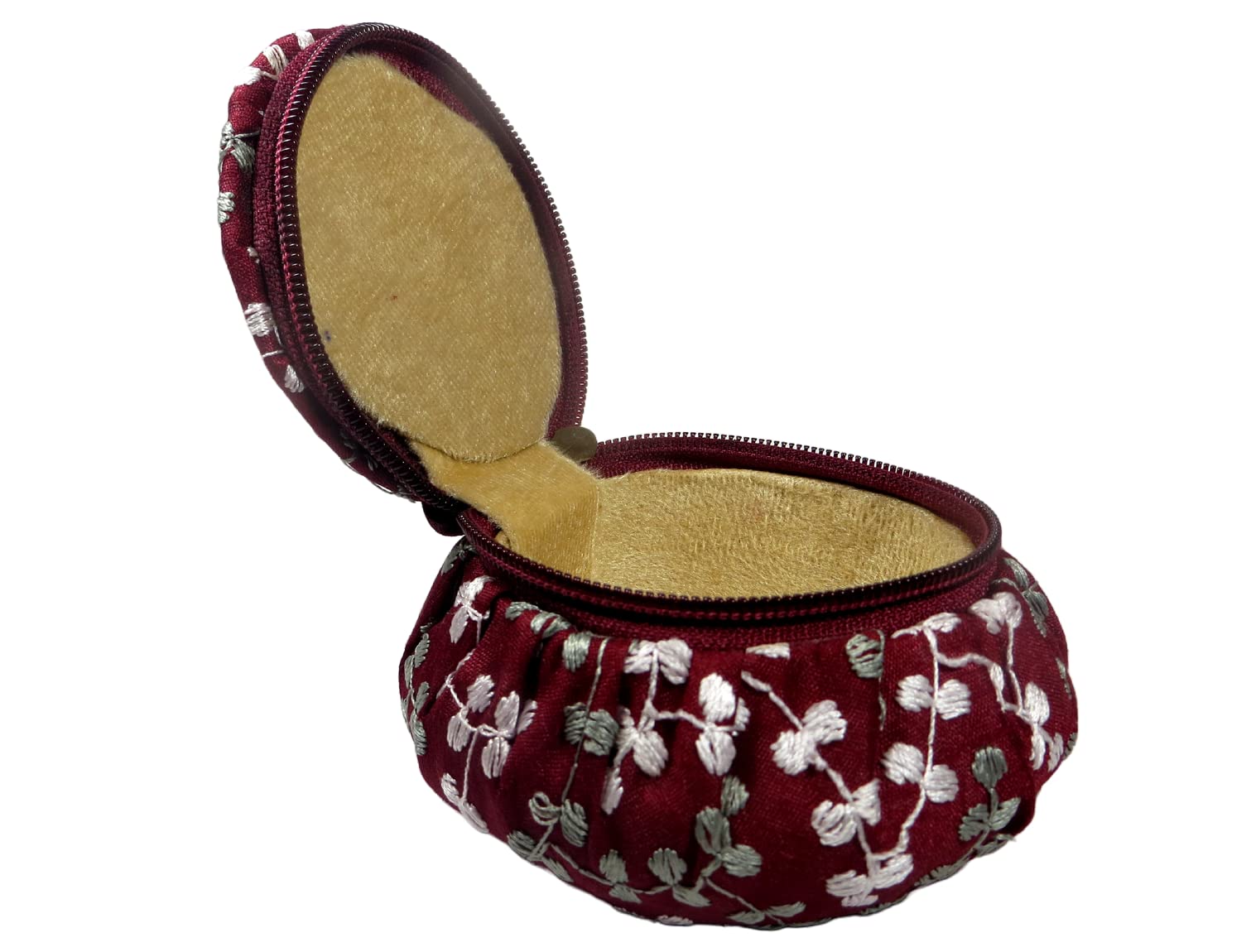 HomeFashionBoxes & HoldersWOOD CARVING WORK Multi-Purpose APPLIQUE JEWELLERY BOX: Small Cotton Hand stitched Pipili Applique Storage Box for valuables Jewellery Cosmetics (4.5 Inches in Diameter 2.5 inches in height and 60 Grams)