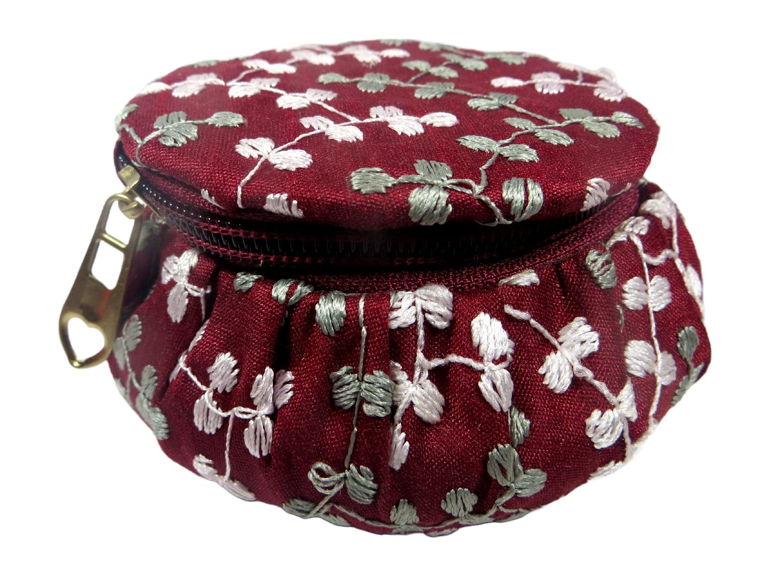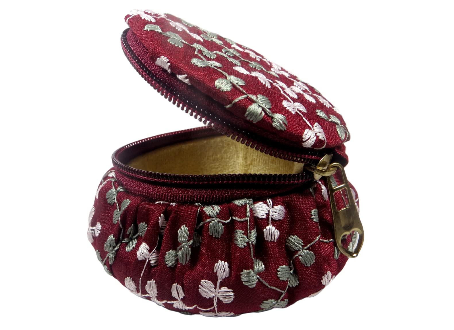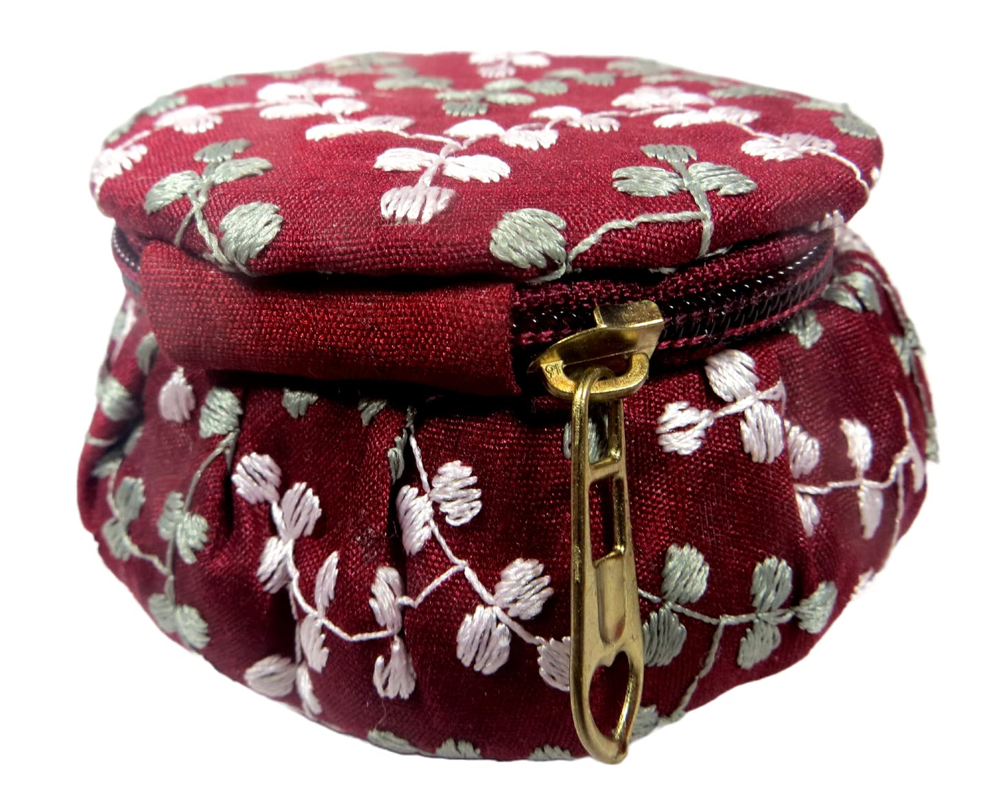 HomeFashionBoxes & HoldersWOOD CARVING WORK Multi-Purpose APPLIQUE JEWELLERY BOX: Small Cotton Hand stitched Pipili Applique Storage Box for valuables Jewellery Cosmetics (4.5 Inches in Diameter 2.5 inches in height and 60 Grams)