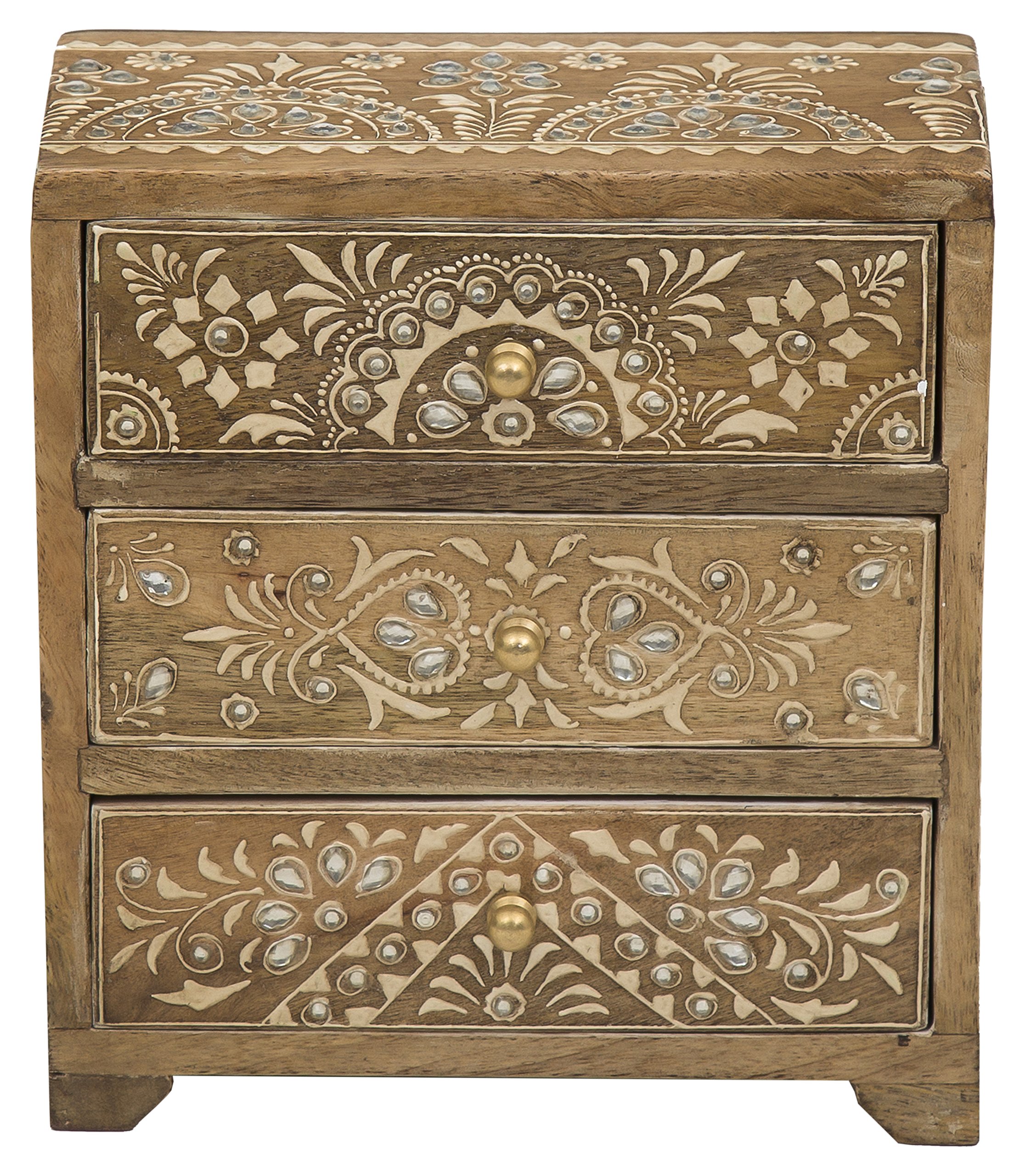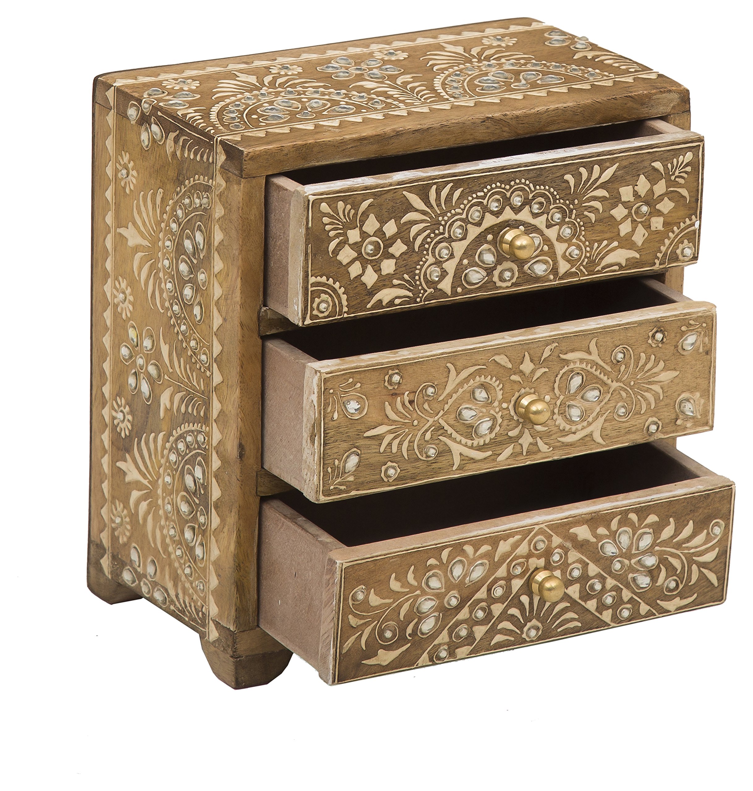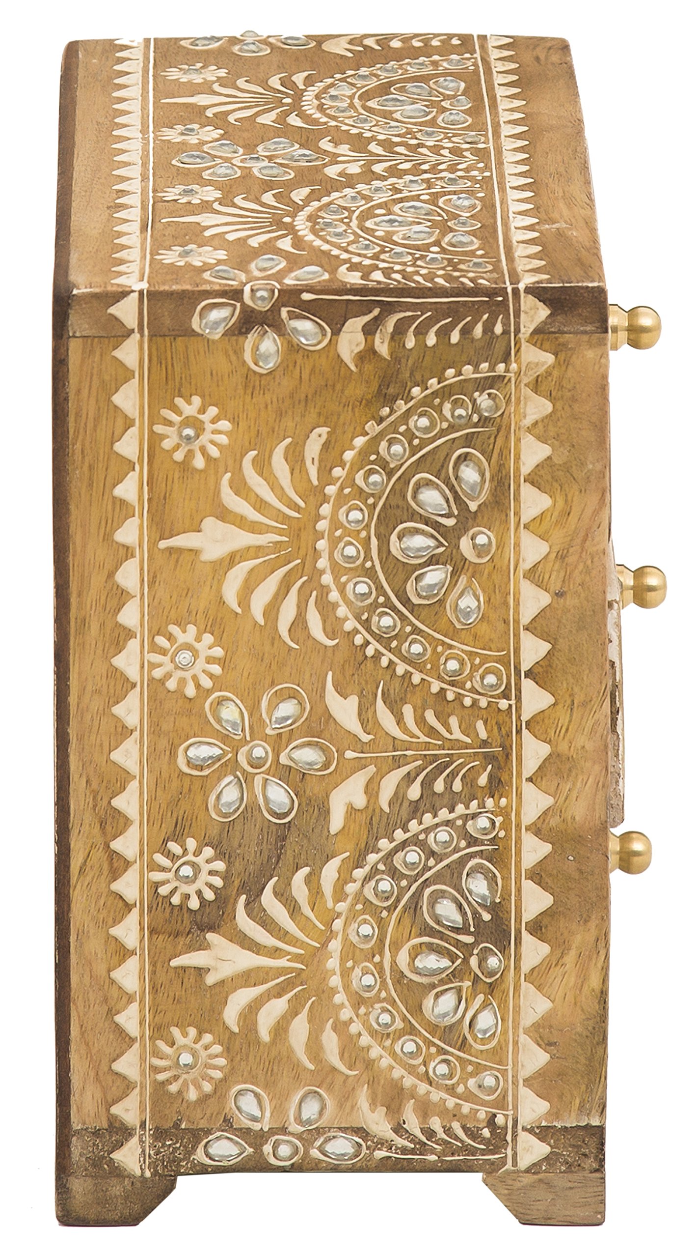 WOOD CRAFTS OF RAJASTHAN Wooden 3 Drawer Decorative Box (25 cm x 21 cm x 20 cm Brown)
