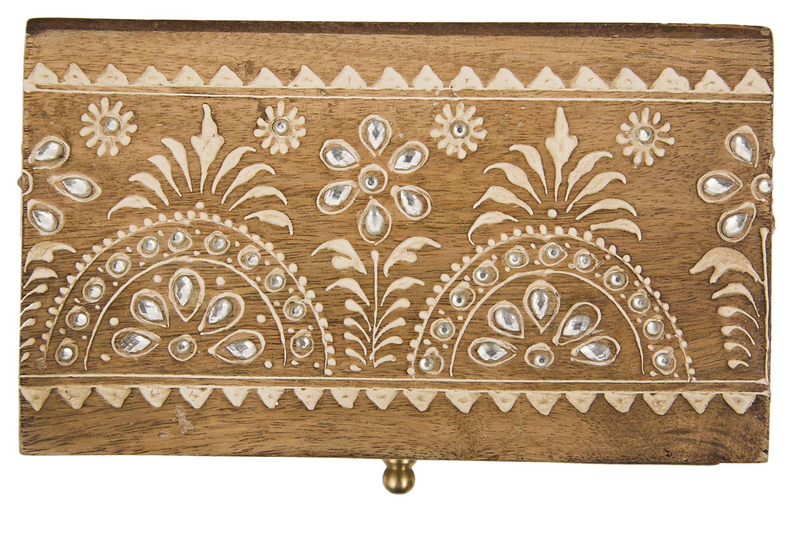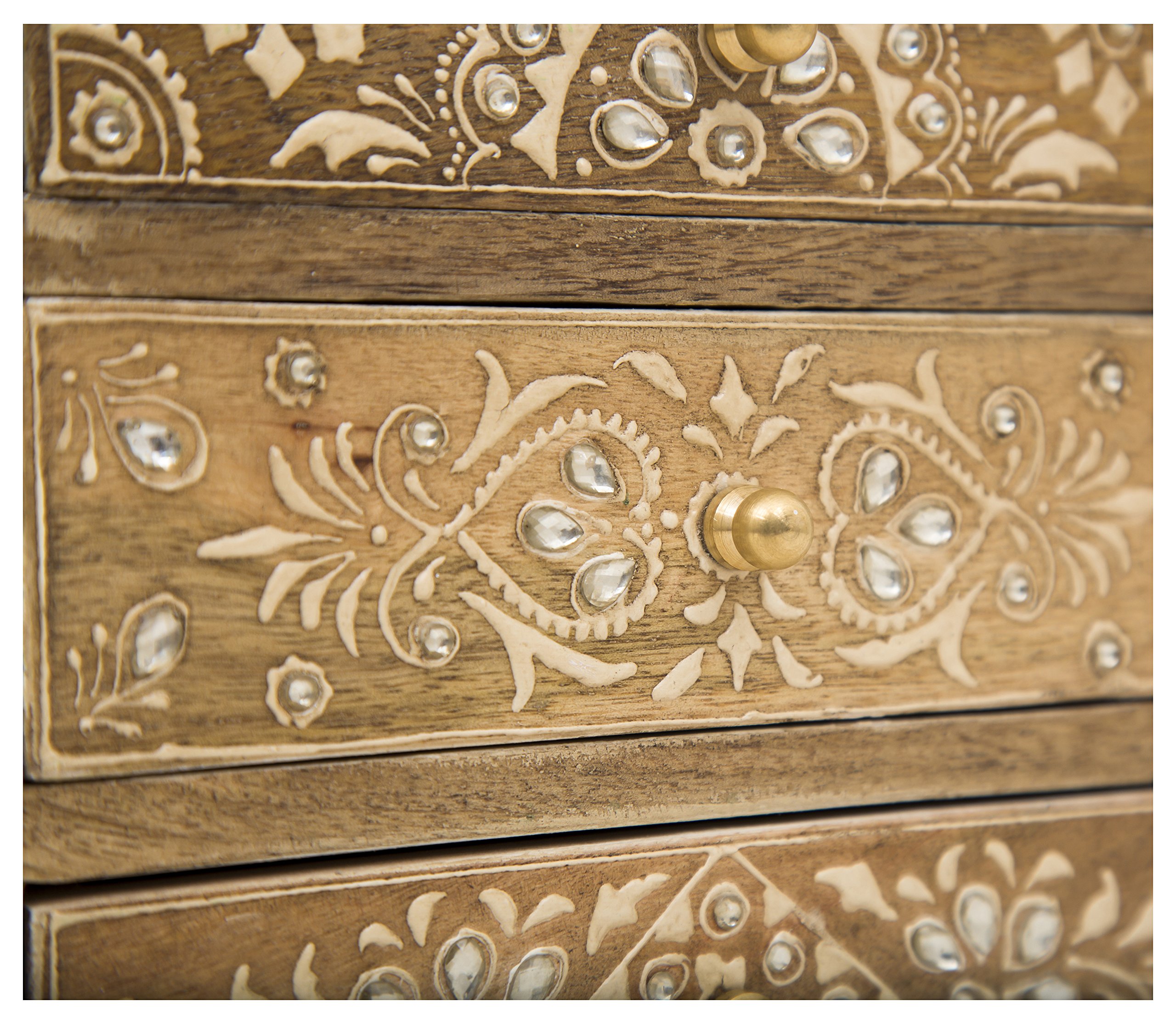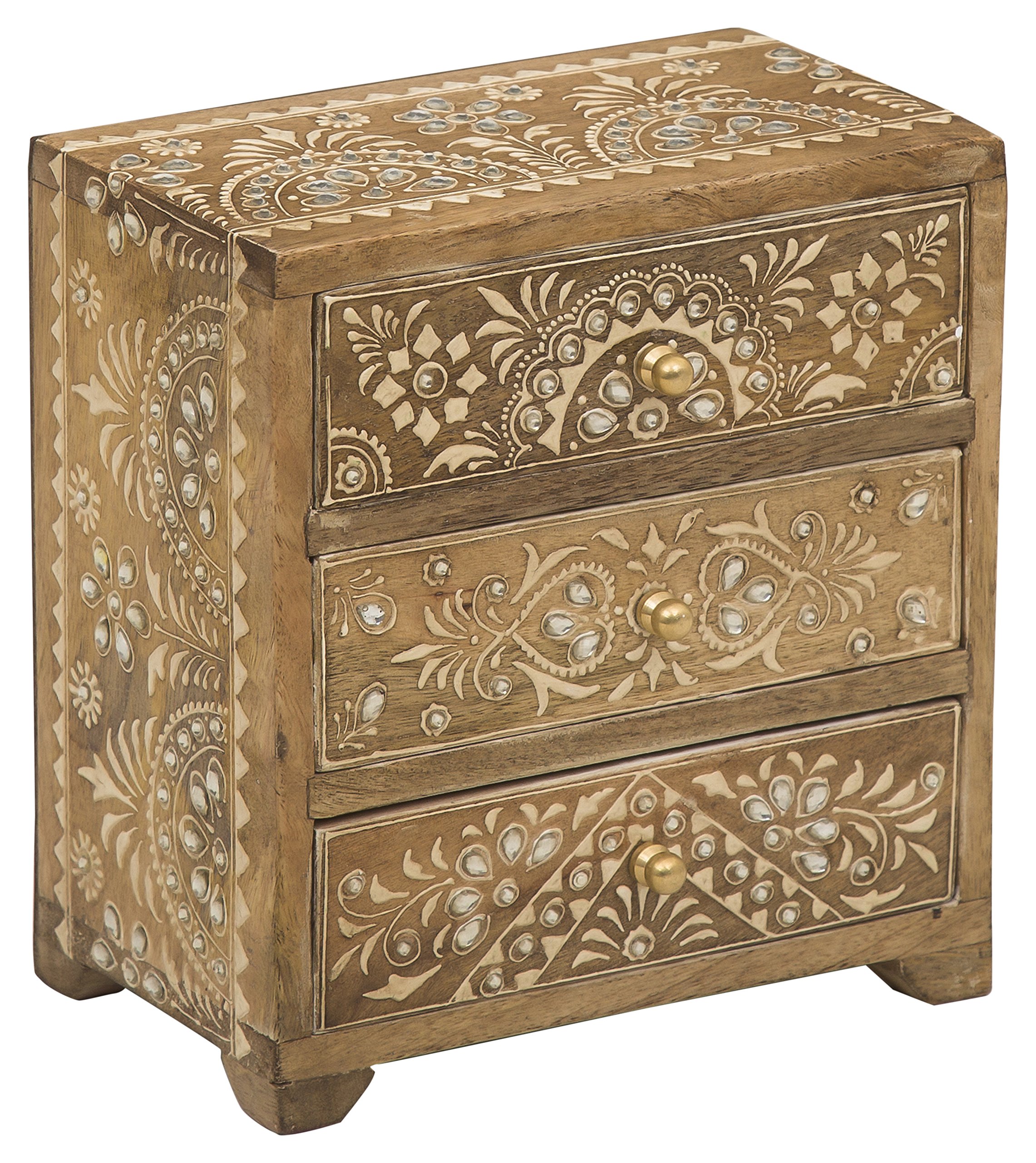 WOOD CRAFTS OF RAJASTHAN Wooden 3 Drawer Decorative Box (25 cm x 21 cm x 20 cm Brown)