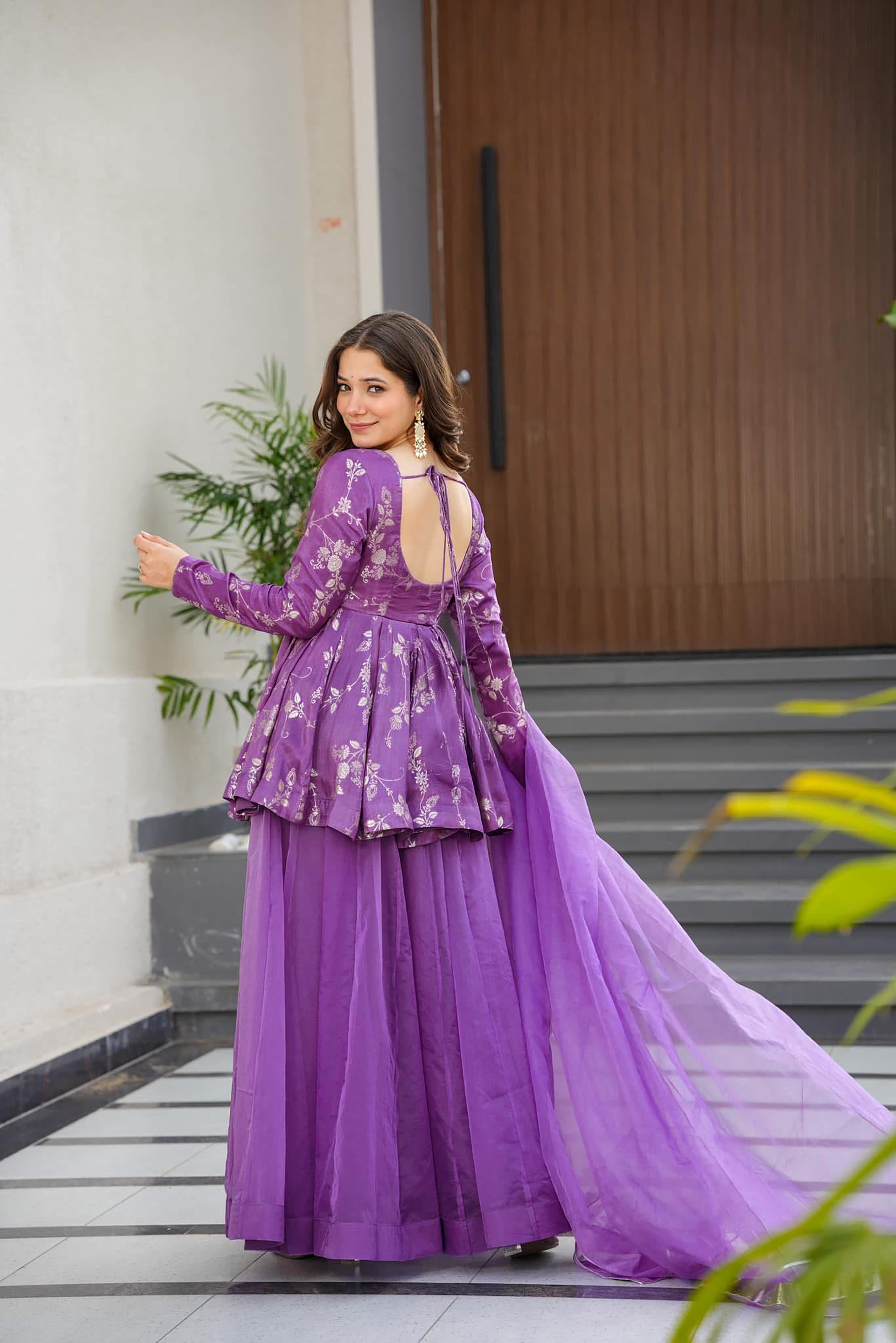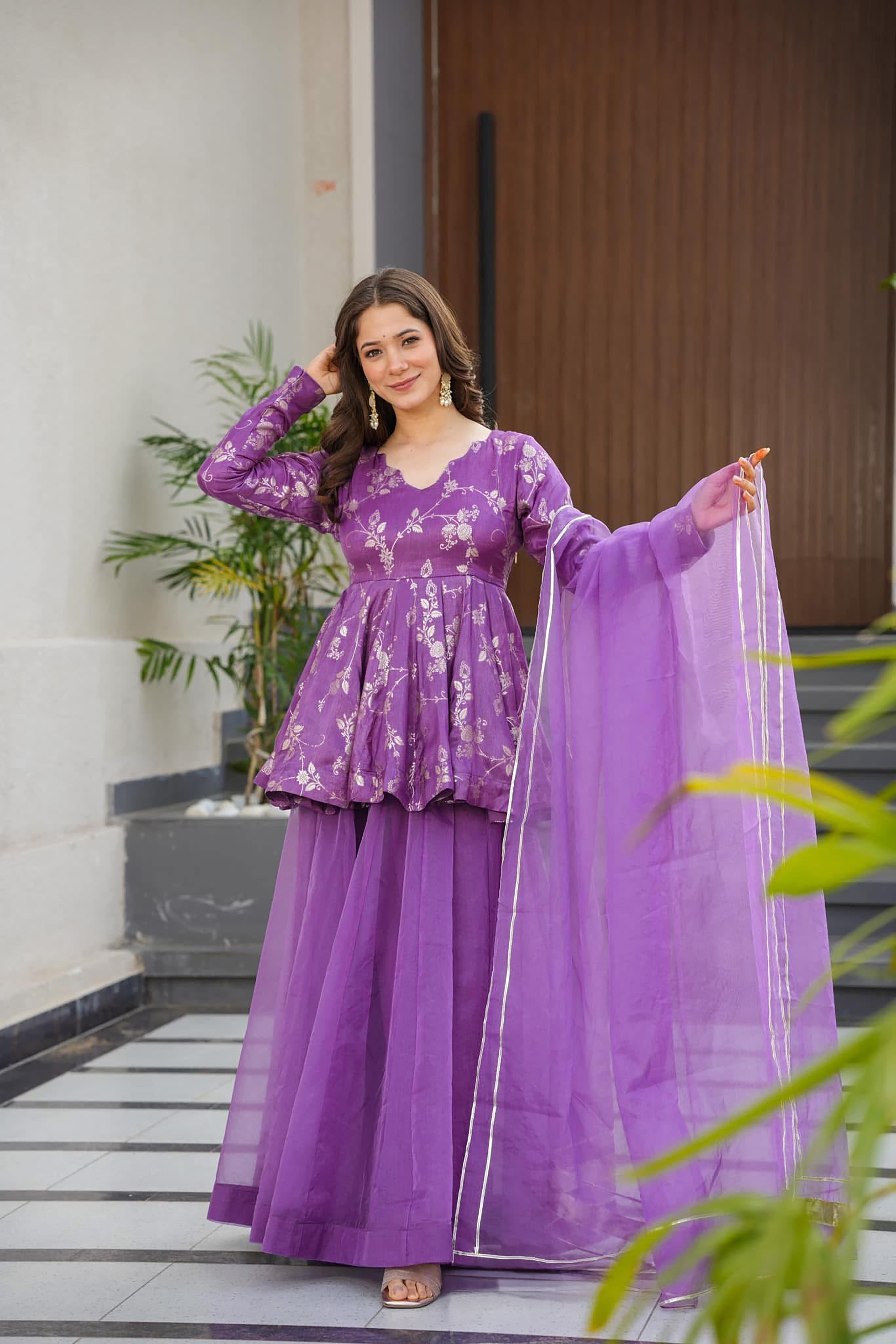 Flared sharara design adds volume while maintaining a lightweight feel