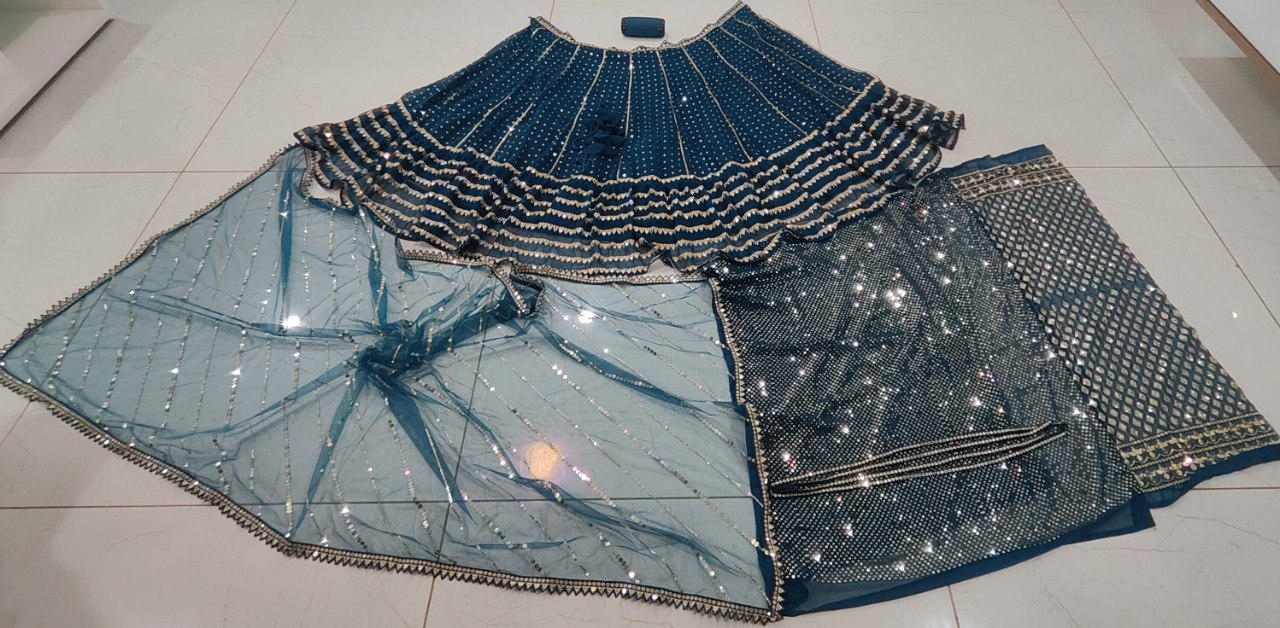 Blue Sequin Embroidered Faux Georgette Lehenga Set