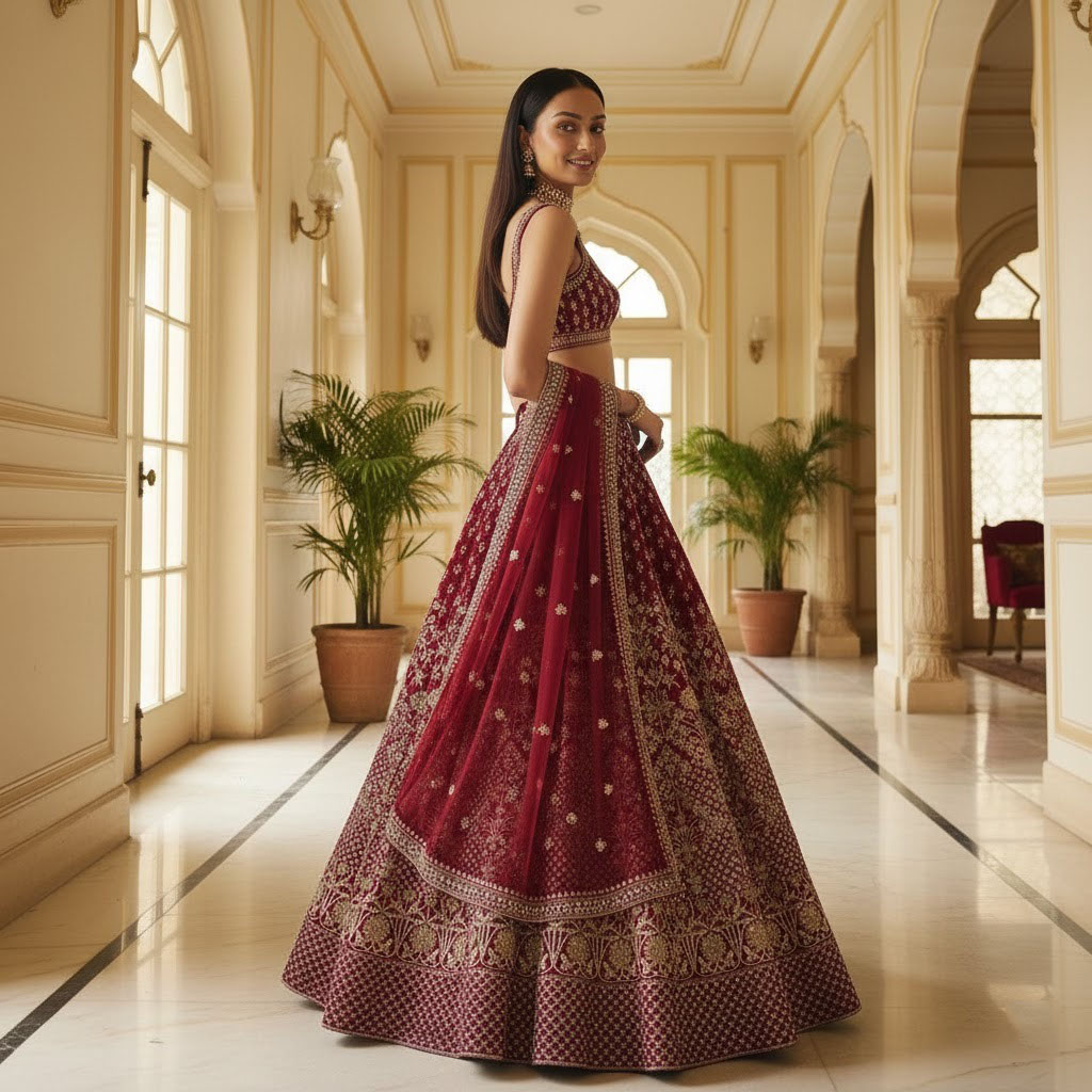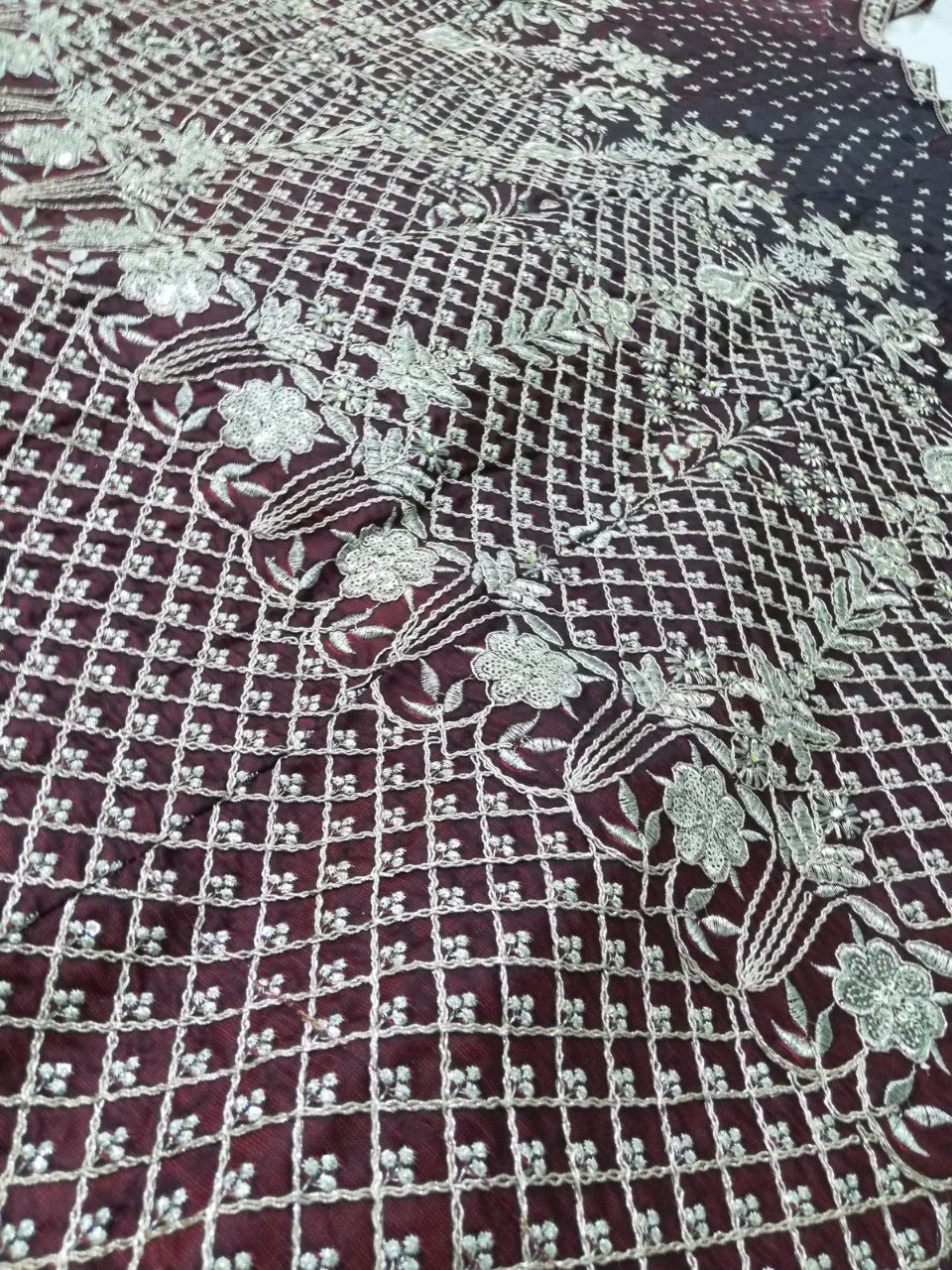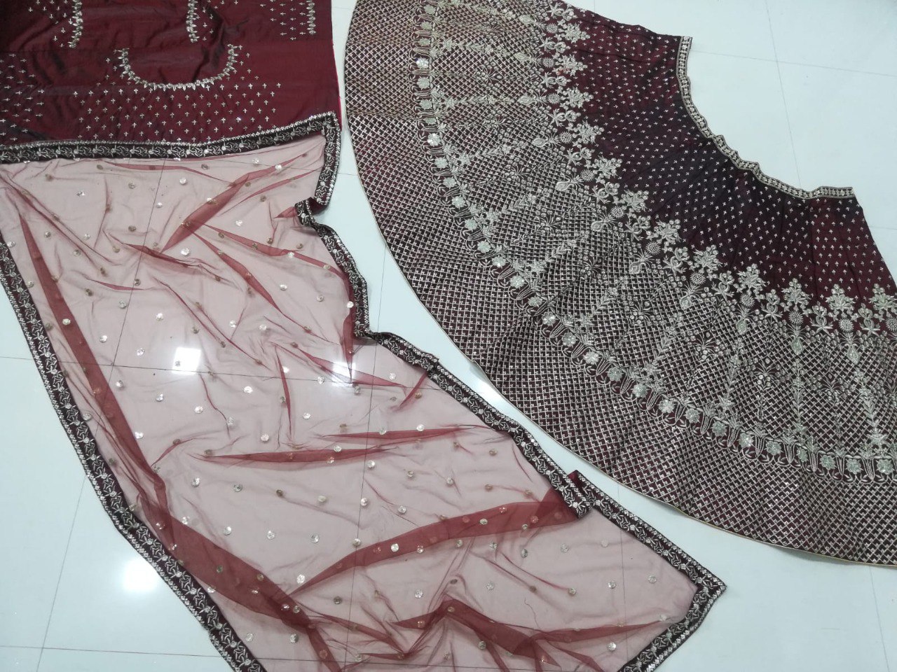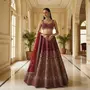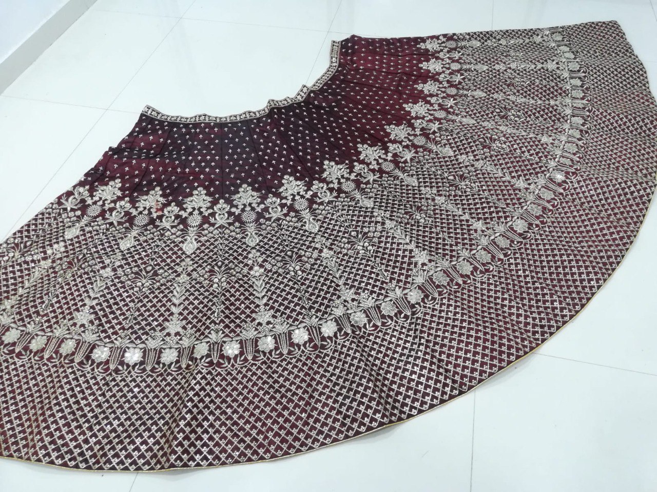 Maroon Sequin Zari Embroidered Banglori Silk Lehenga Set