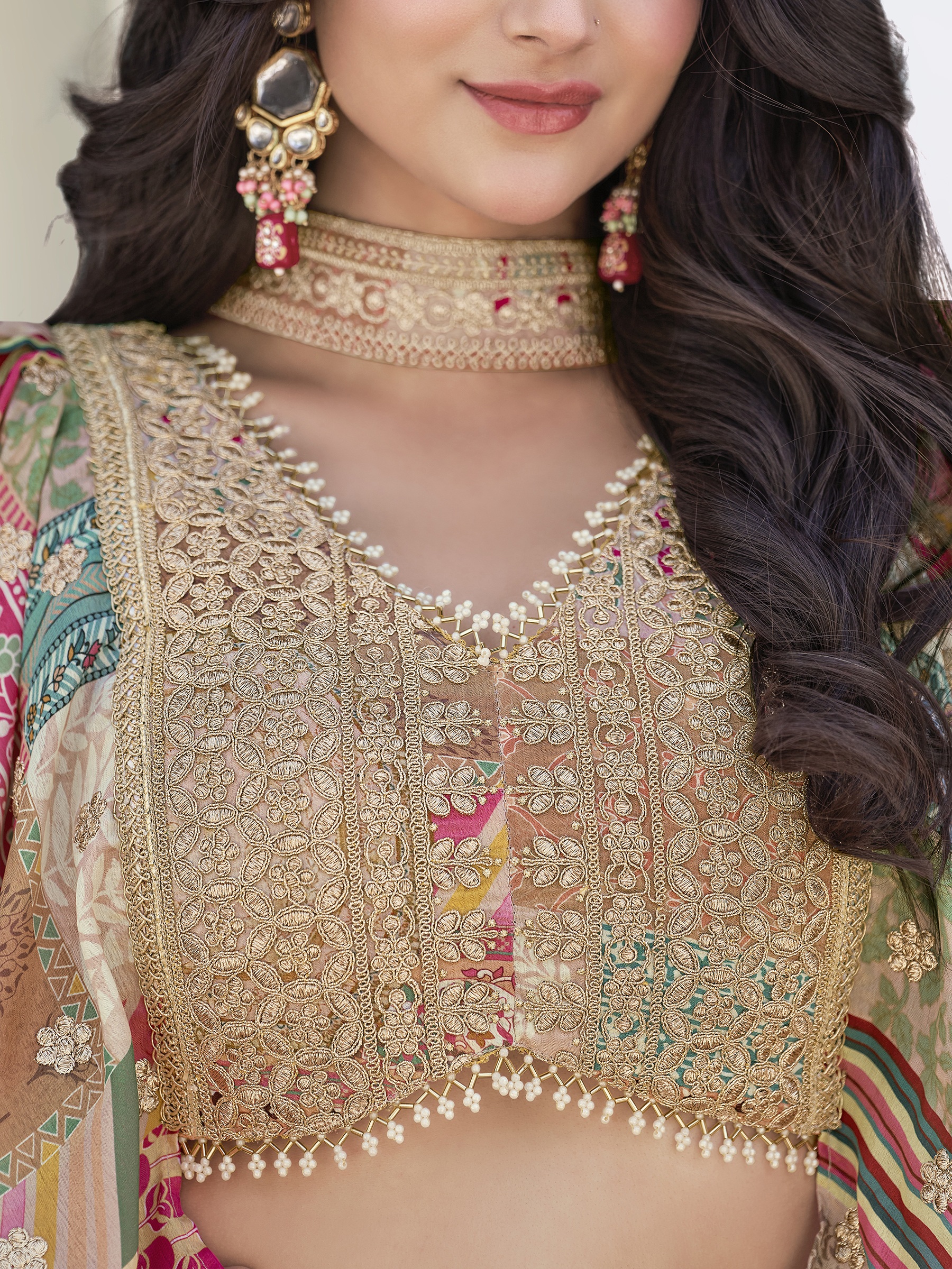 Womens Beige Chinnon Dori Embroidery Lehenga Set