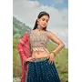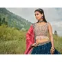 Womens Blue Faux Georgette Thread Embroidery Lehenga Set