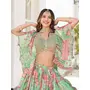Womens Green Chinnon Dori Embroidery Lehenga Set