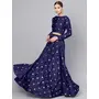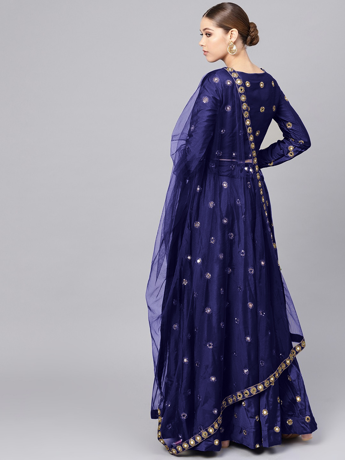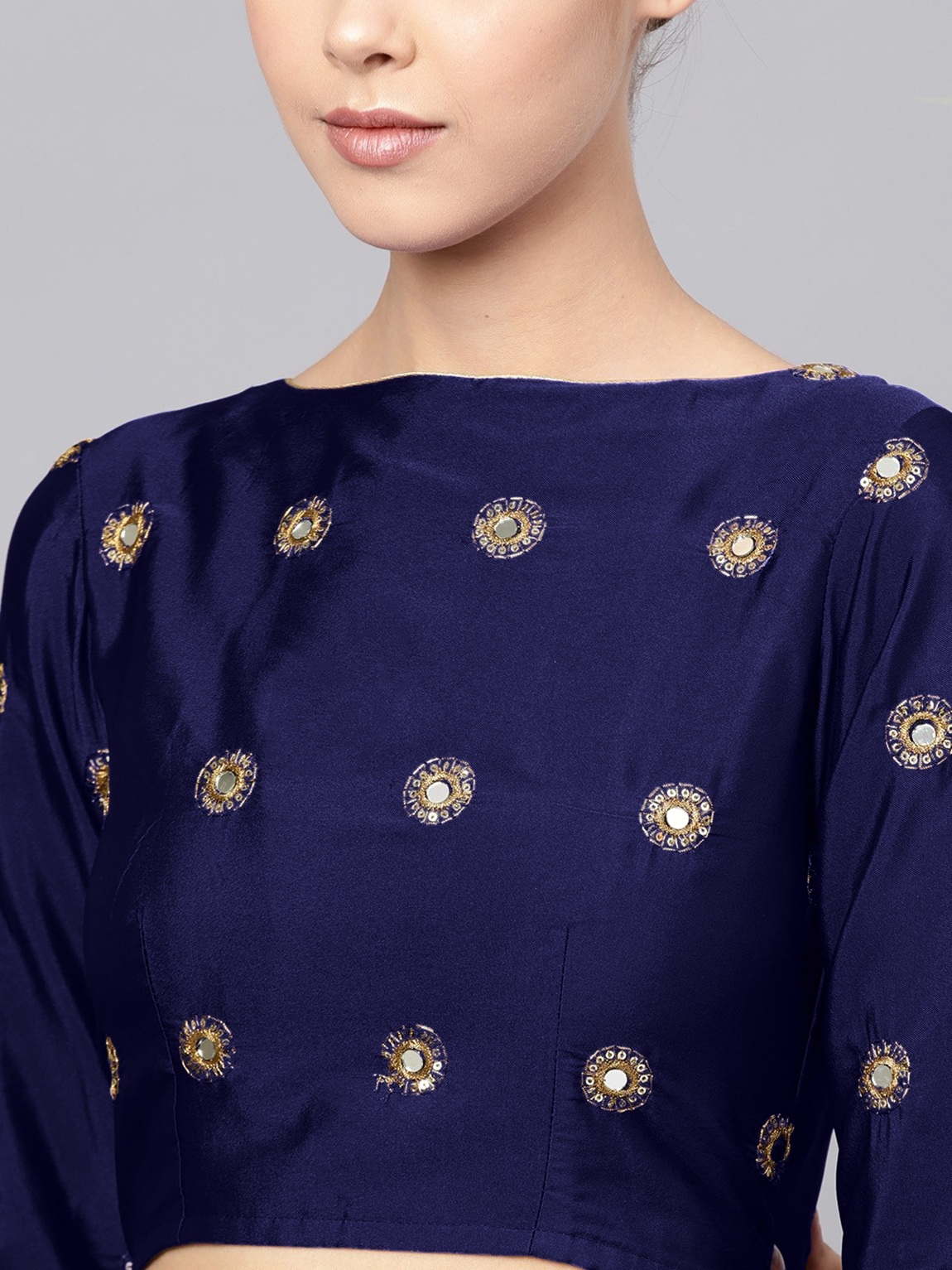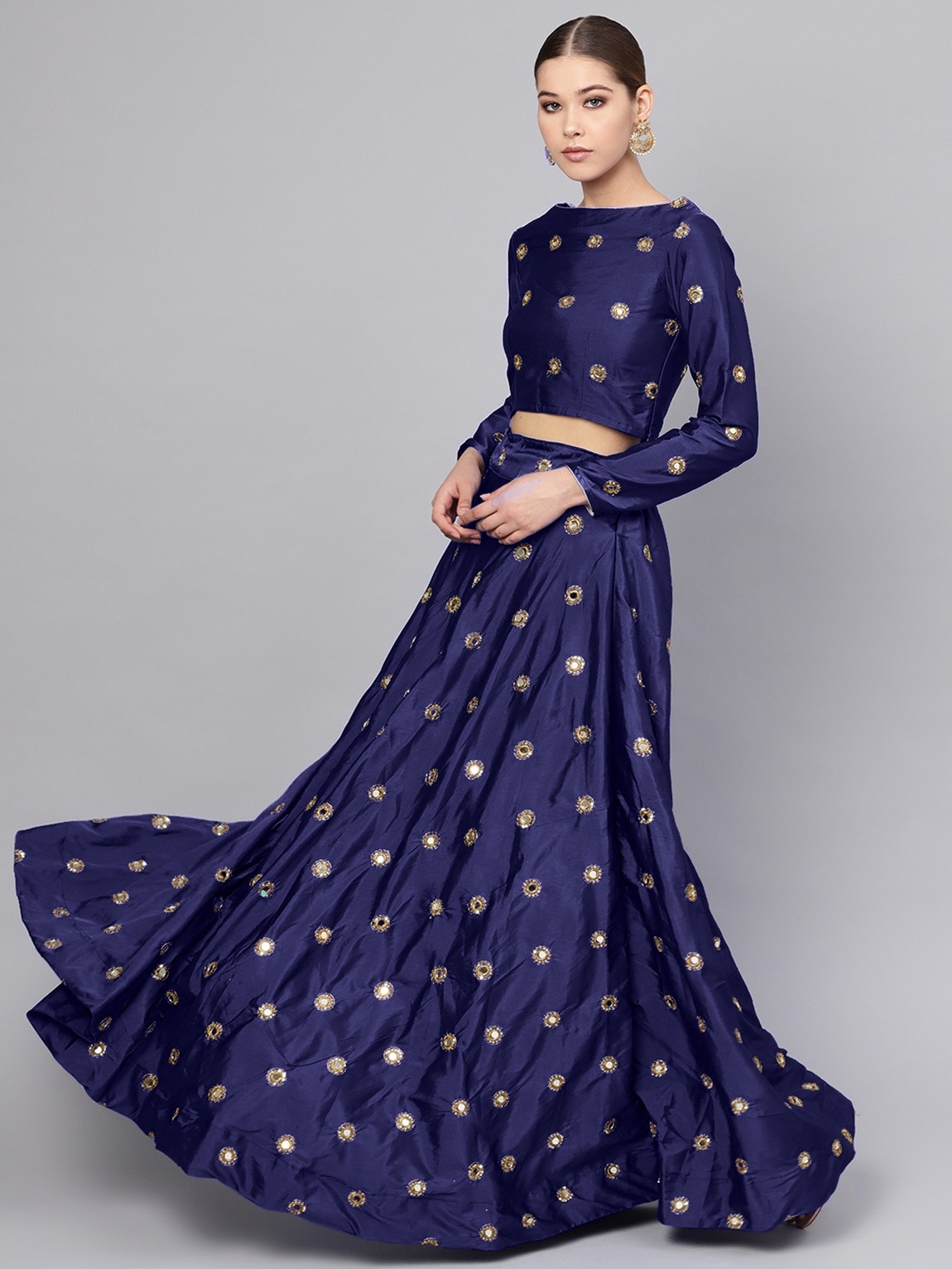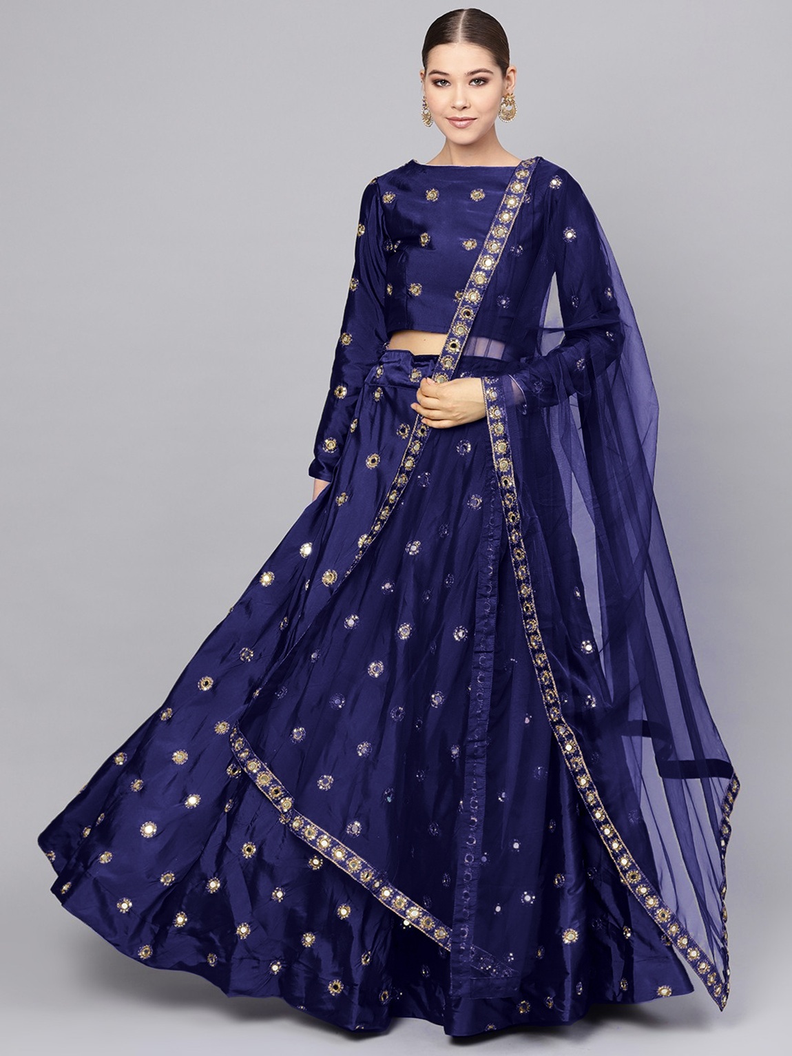 Womens Navy Blue Taffeta Mirror Lehenga Set