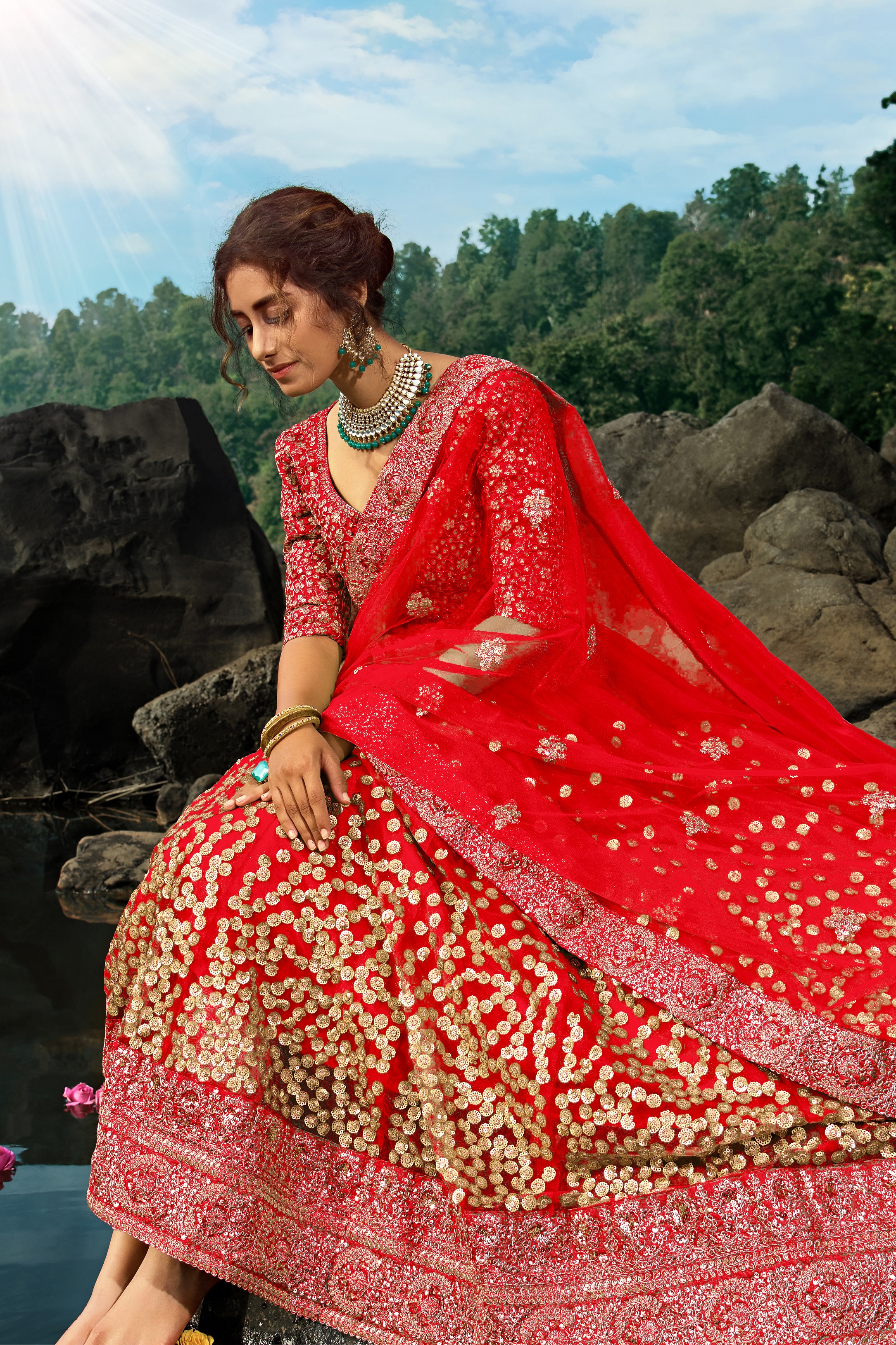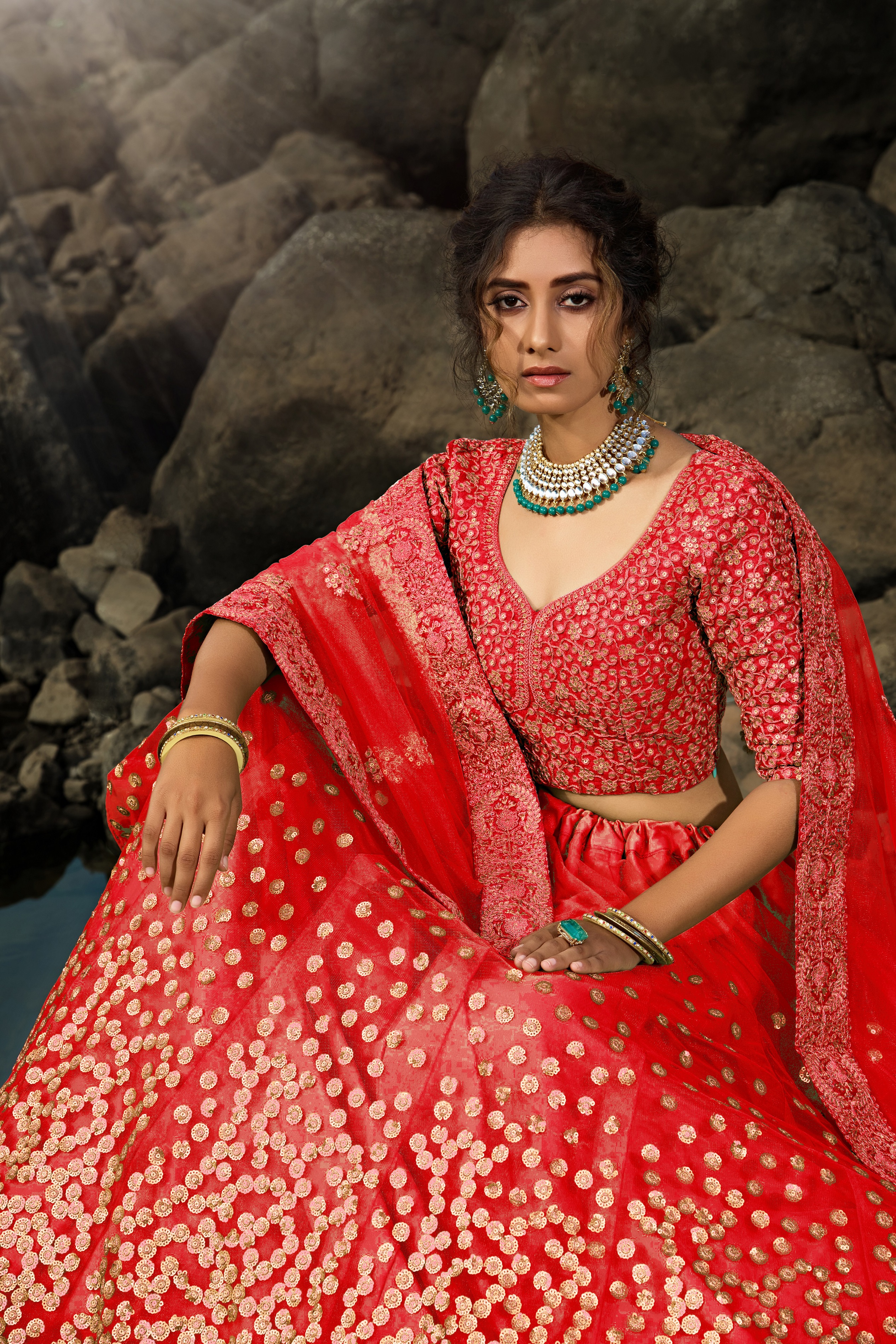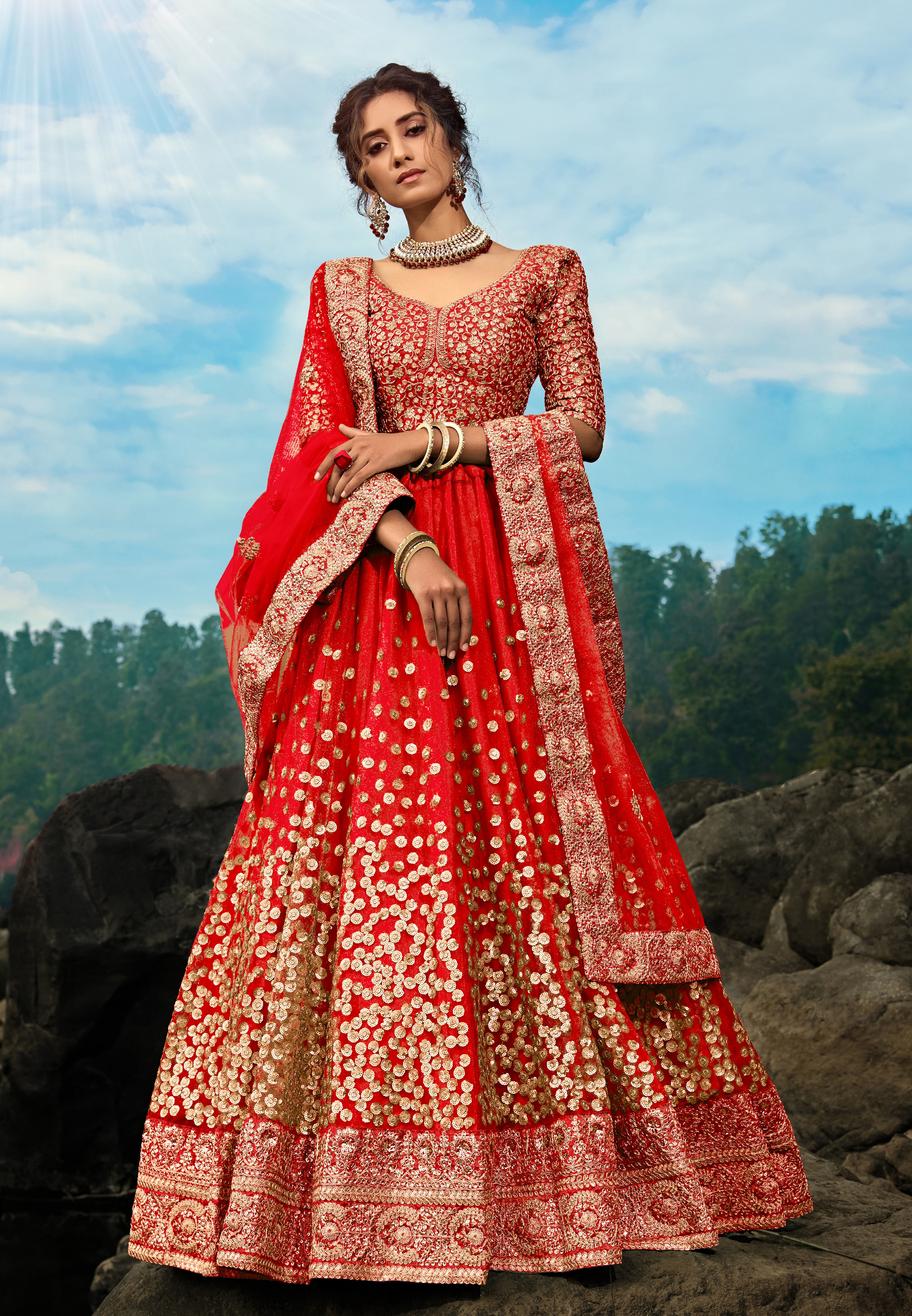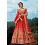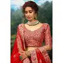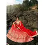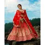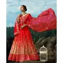 Womens Red Net Sequience Work Lehenga Set