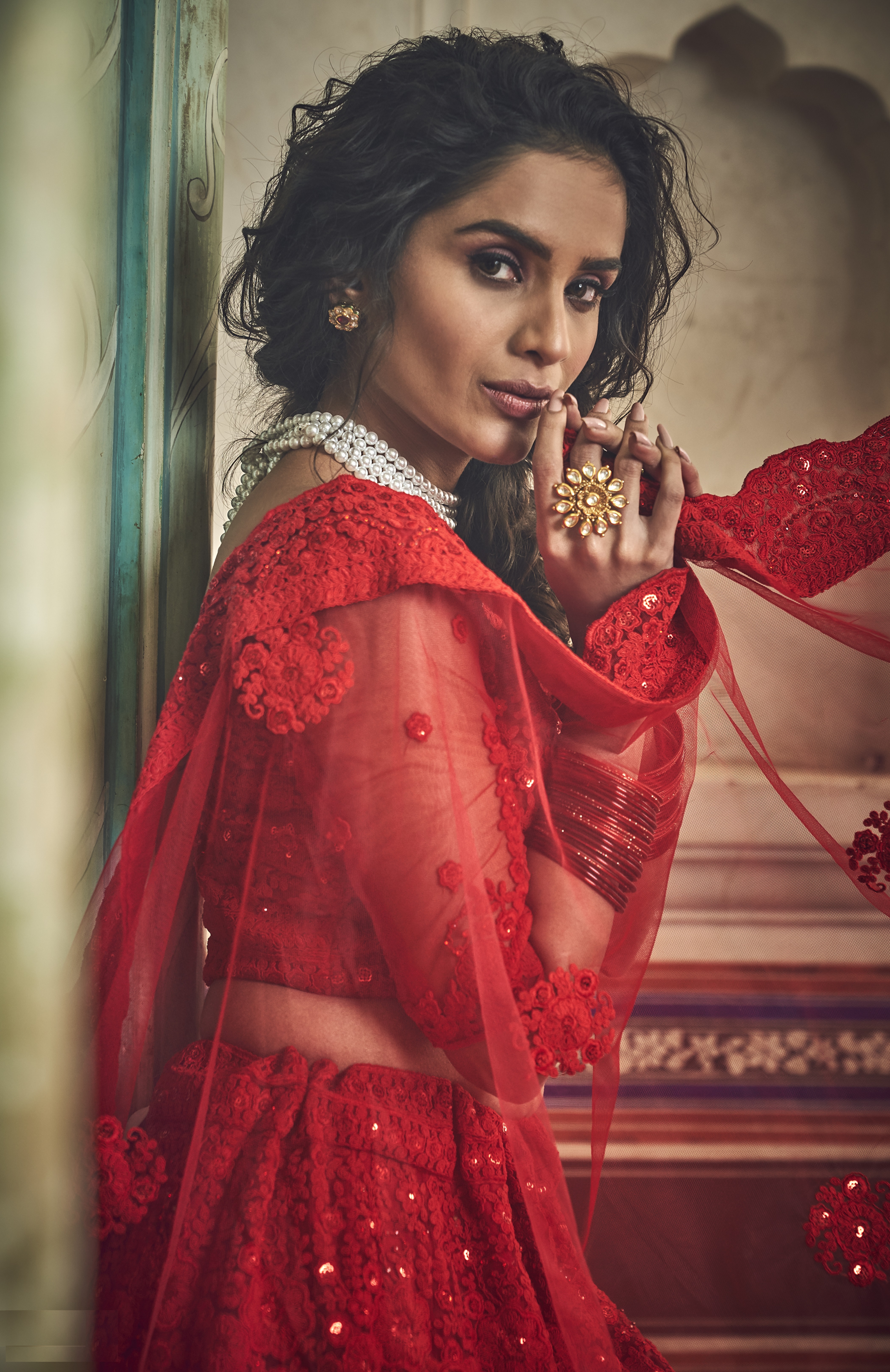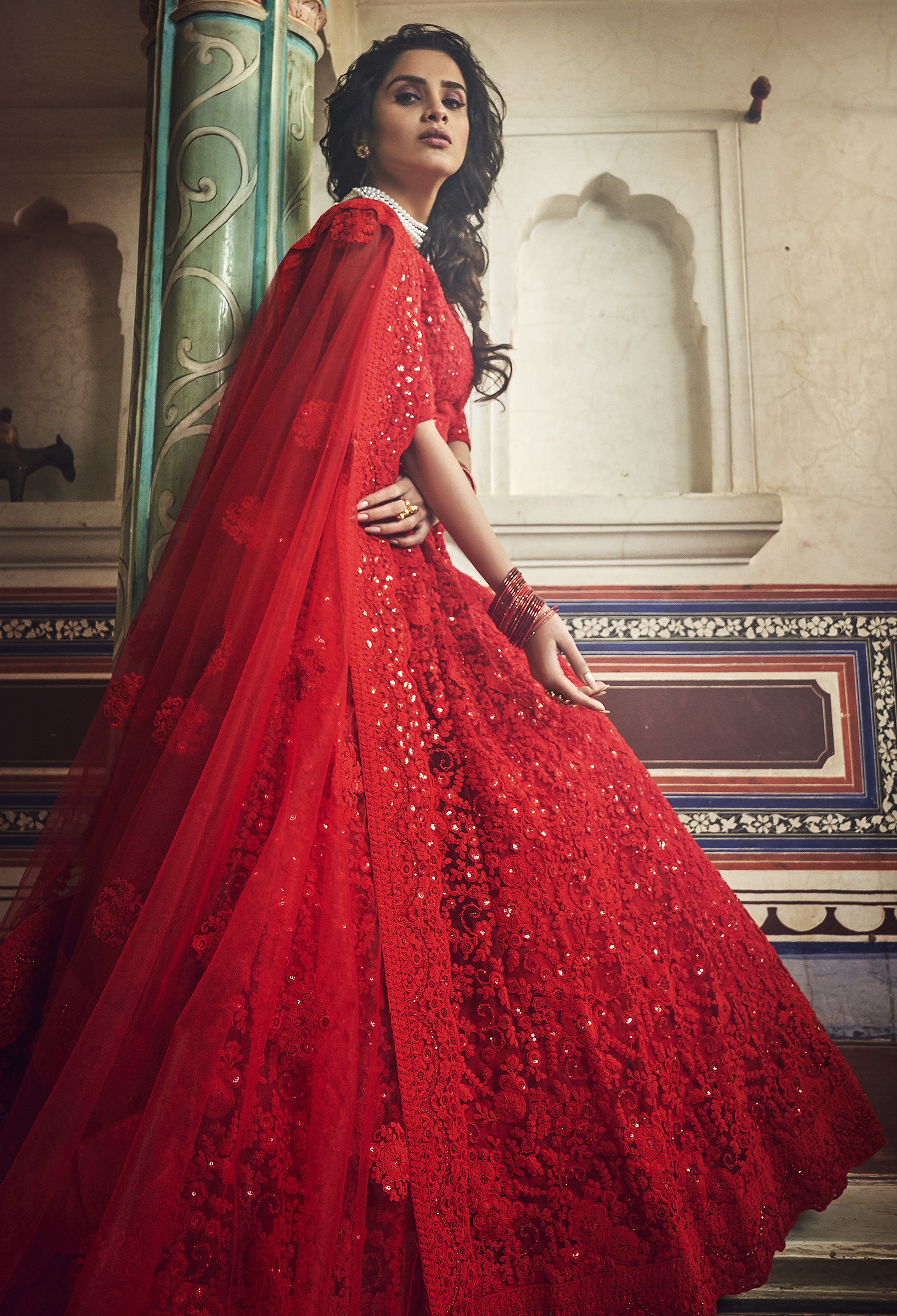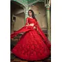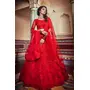 Womens Red Net Thread Embroidery Lehenga Set
