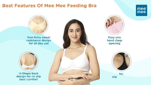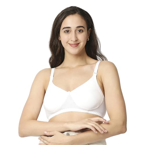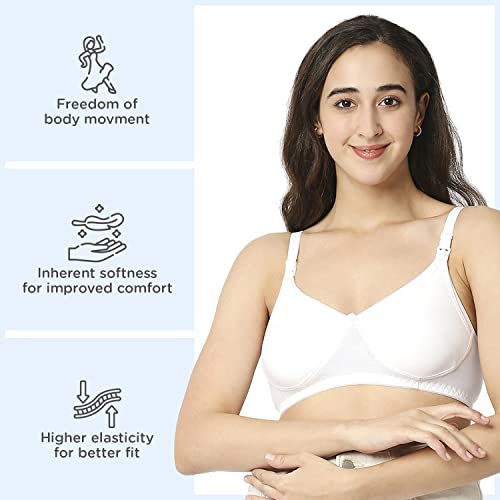HomeFashionIntimate WearMee Mee Women's 4 Ways Lycra Maternity Bra | Adjustable Straps, Non-Padded, Non-Wired Nursing Bra | Full Cup Feeding Bra | Post Pregnancy Easy to Breastfeed | White