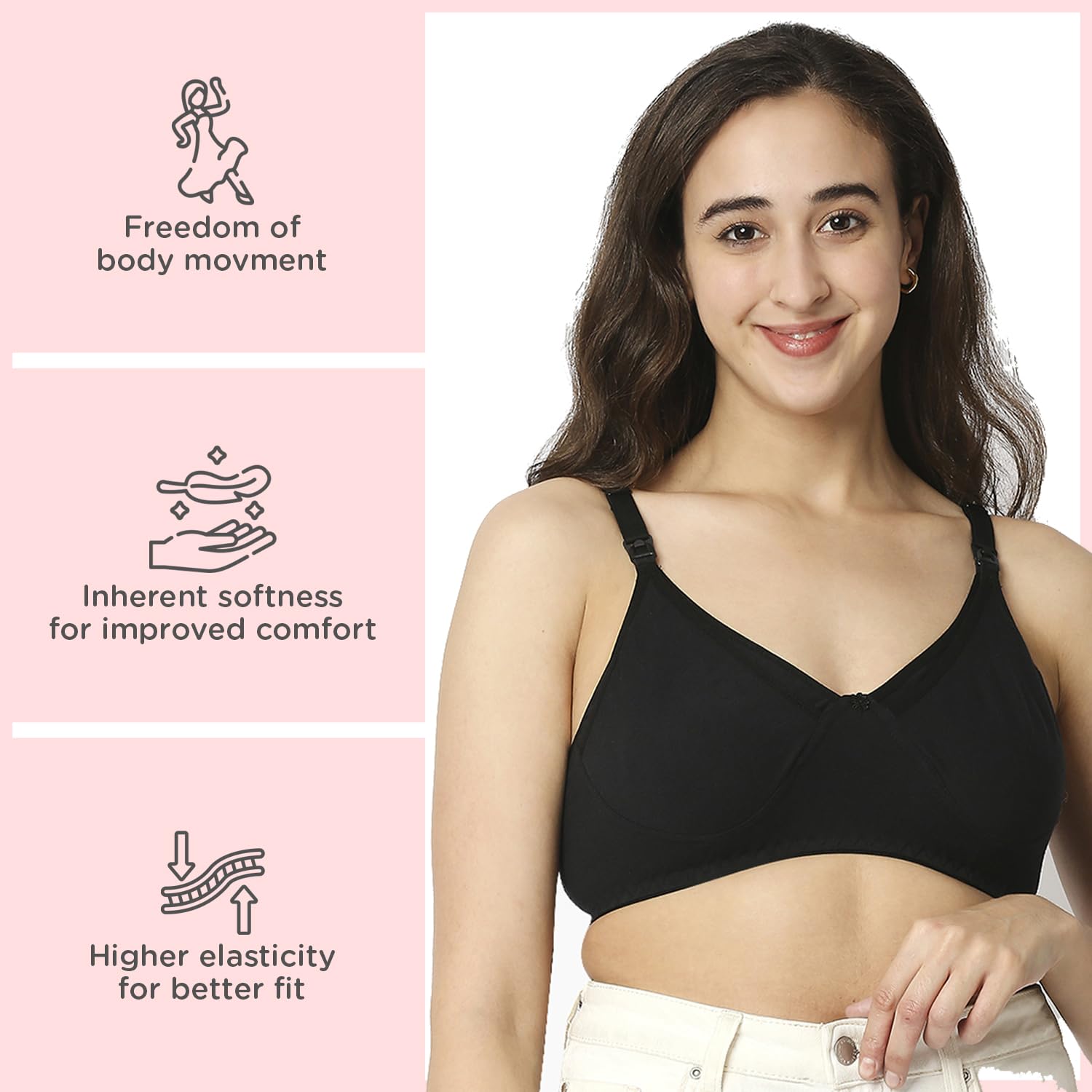 HomeFashionIntimate WearMee Mee Women's 4 Ways Lycra Maternity Bra | Adjustable Straps Non-Padded Non-Wired Nursing Bra | Full Cup Feeding Bra | Post Pregnancy Easy to Breastfeed | White Skin and Black Pack of 3