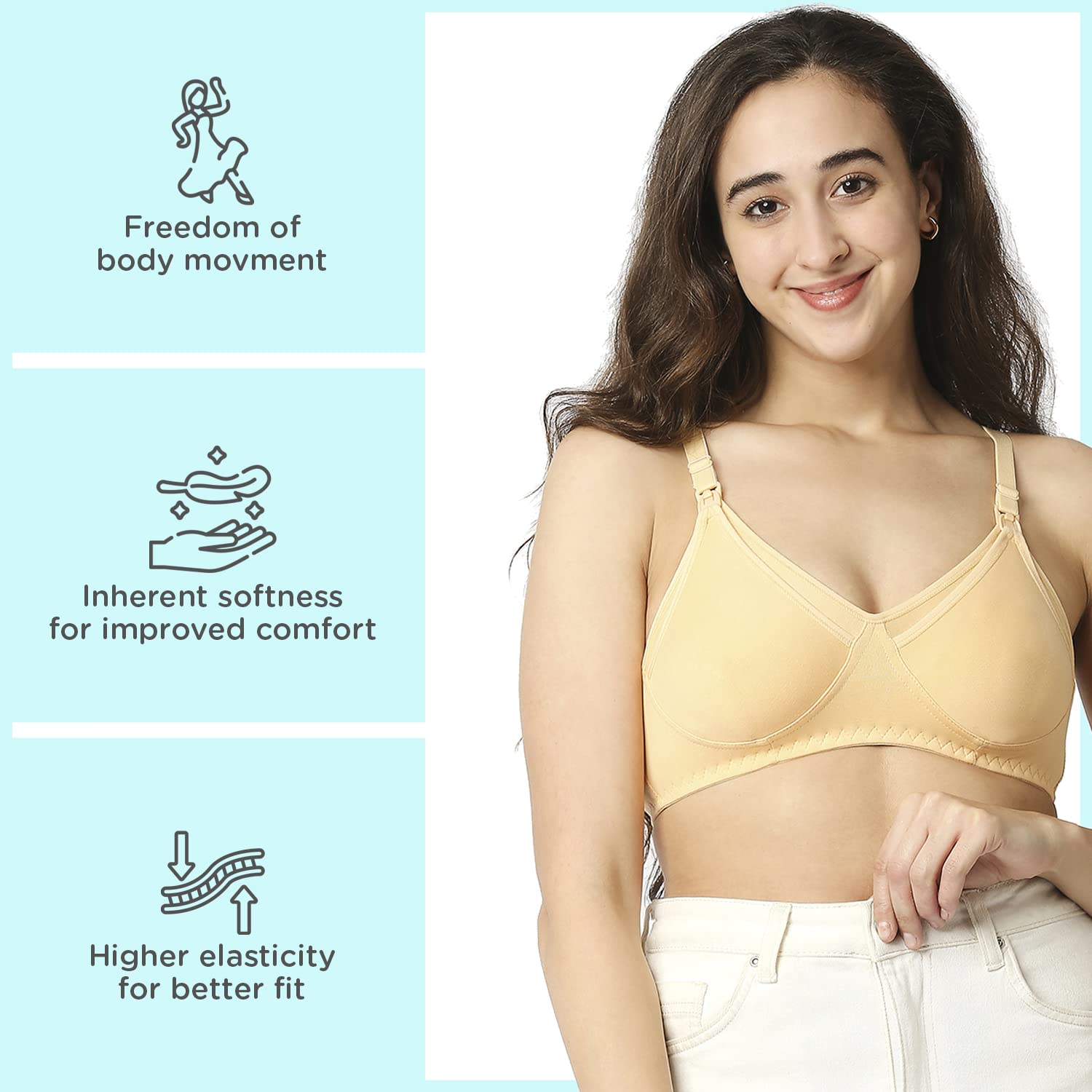 Mee Mee Women's Cotton Non-Padded | Double Layered | Wire Free Maternity Bra | Skin Pink | Pk of 2 |
