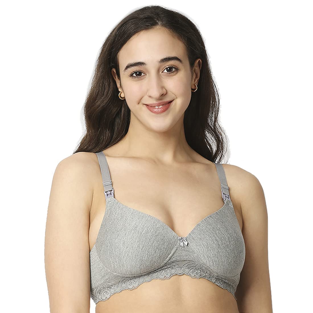 Mee Mee Women's 4 Ways Lycra Maternity Bra | Adjustable Straps, Non-Padded, Non-Wired Nursing Bra | Full Cup Feeding Bra | Post Pregnancy Easy to Breastfeed (Grey)