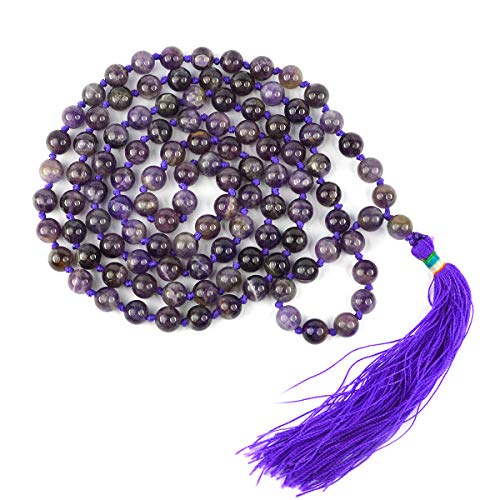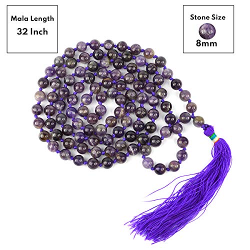 Amethyst Mala Natural Crystal Stone 8 mm 108 Round Bead Jap Mala for Reiki Healing and Crystal Heali