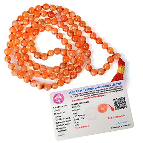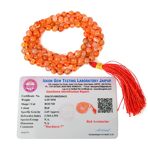 Certified Natural Red Aventurine Mala Semi Precious Crystal Stone 6 mm 108 Beads Jap Mala / Necklace
