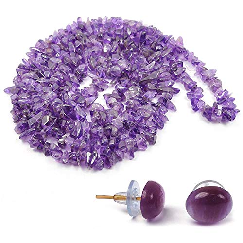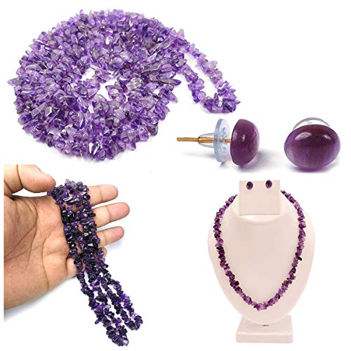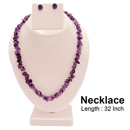 Natural Amethyst Necklace/Mala with Earring Set for Reiki Healing and Crystal Healing Stone