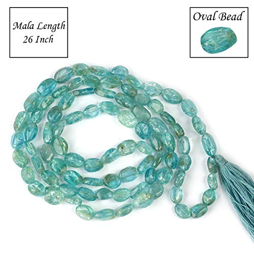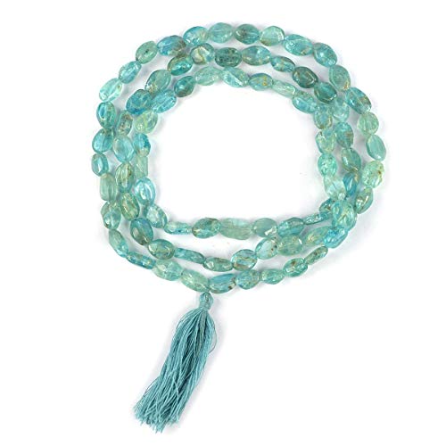 Natural Apatite Mala Crystal Stone Oval Bead Mala for Reiki Healing Stone (Color : Green)