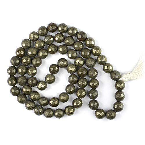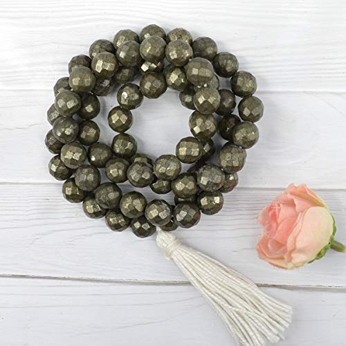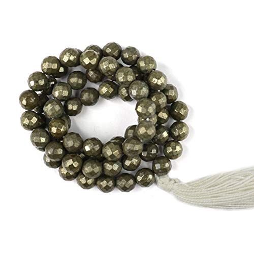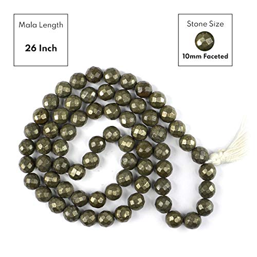 Natural Pyrite Mala Crystal Stone 10 mm Faceted / Diamond Cut Bead Mala for Reiki Healing Stone (Col