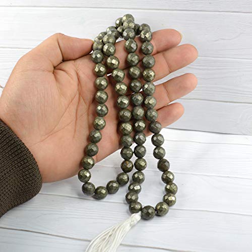 Natural Pyrite Mala Crystal Stone 10 mm Faceted / Diamond Cut Bead Mala for Reiki Healing Stone (Color : Golden)