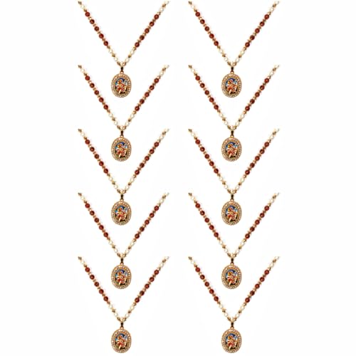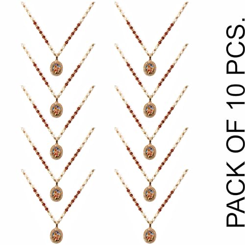 Red-White Bead Chain Mala with Bhagwan Hanuman Ji Pendant Pack of 10 pcs