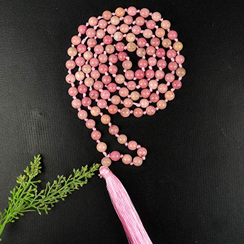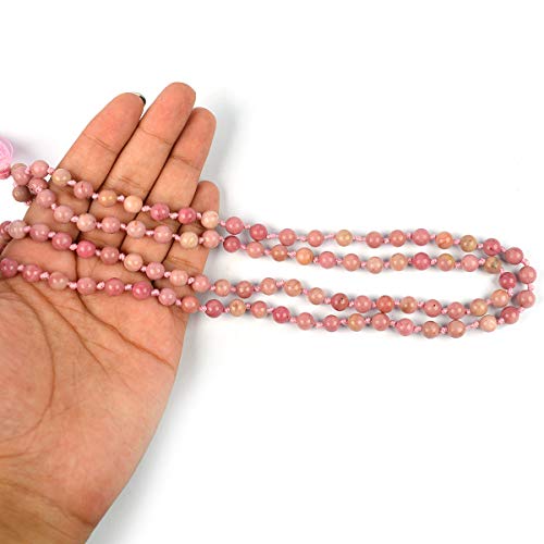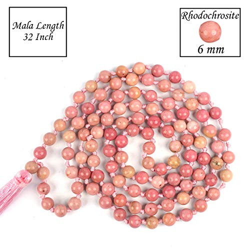 Rhodocrosite Mala 6 mm Stone Mala/Necklace Crystal Mala 108 Beads Jaap Mala for Reiki Healing and Crystal Healing Stone (Color : Pink)