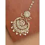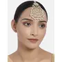 I Jewels Gold Plated Kundan with Pearls Bollywood Indian Style Bridal Wedding Maang Tikka Jewelry for Women