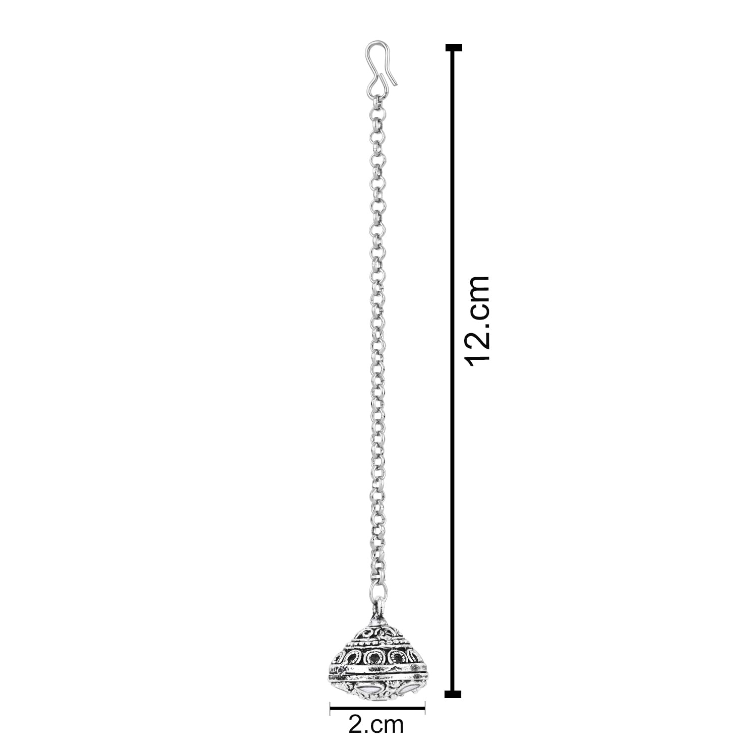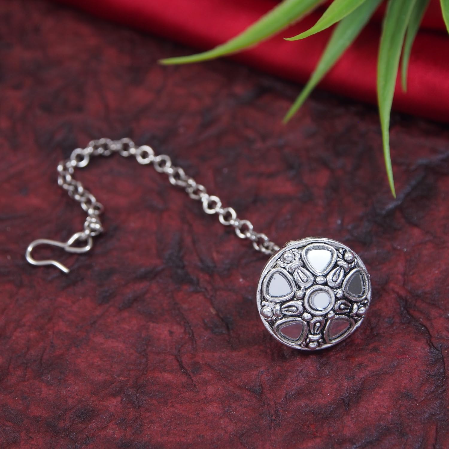 I Jewels Navratri Ethnic Silver Oxidised Mirror Work Borla/Maang Tikka For Women