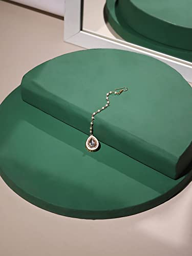 Ruby Raang Women's Mixed Metal Artificial Kundan Maang Tikkas - Traditional Jewellery Set for Women (Gold)