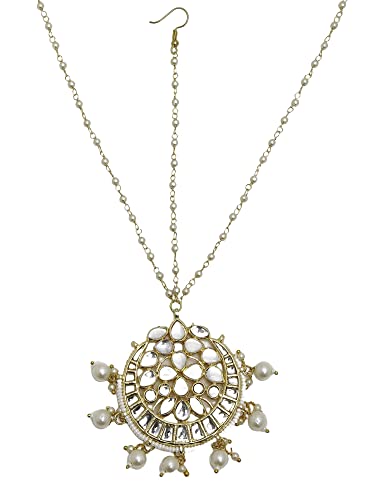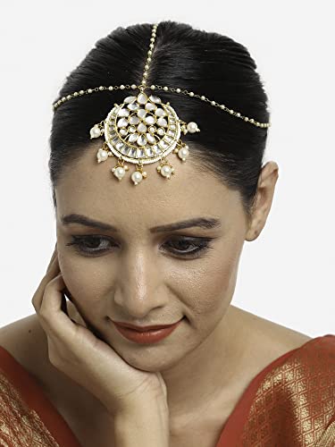 Ruby Raang Women's Mixed Metal Artificial Kundan Maang Tikkas - Traditional Jewellery Set for Women (Gold)