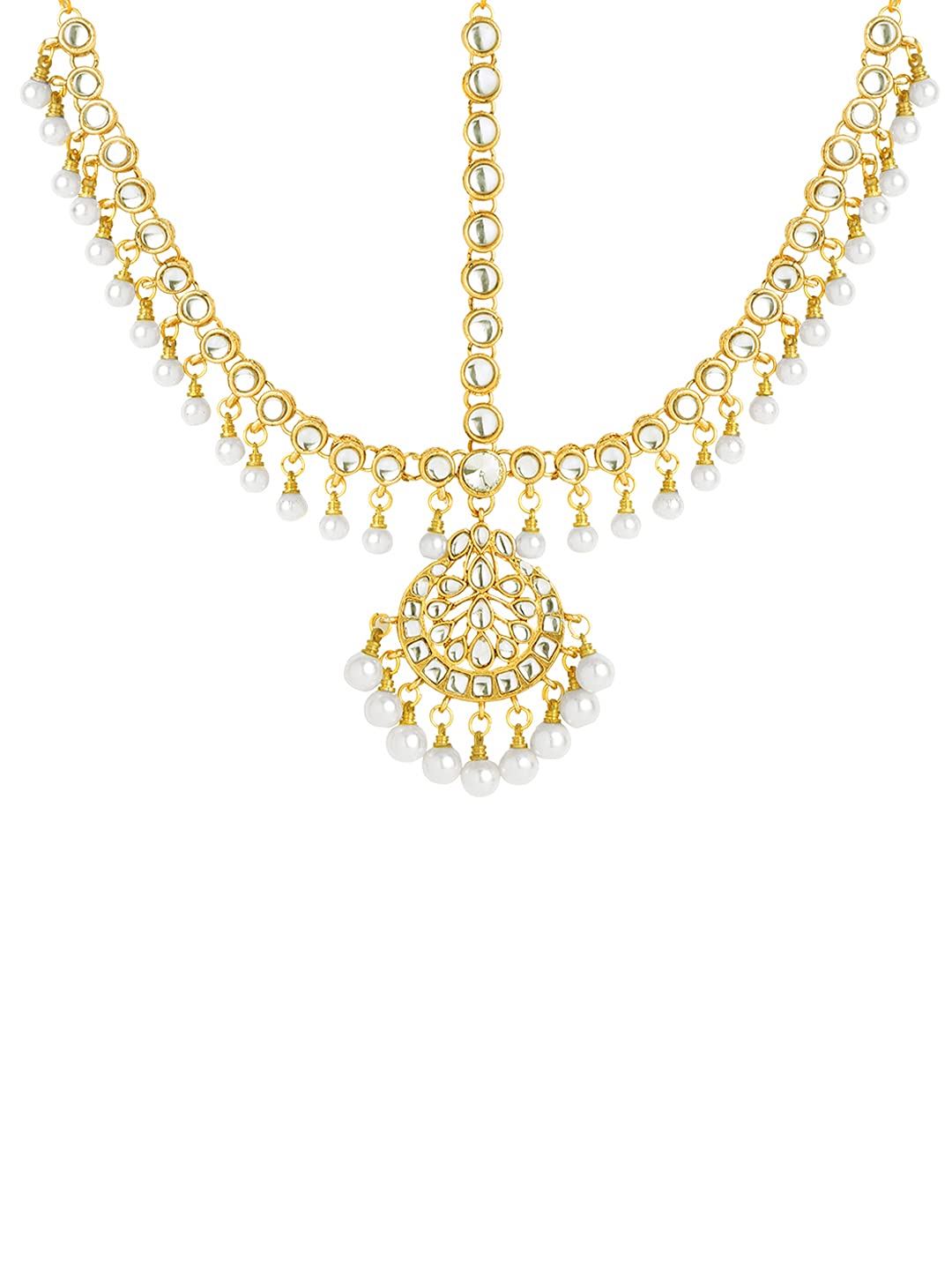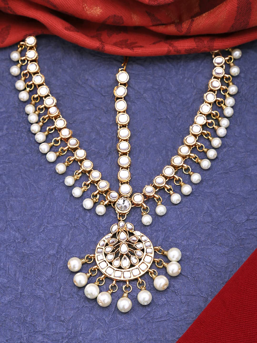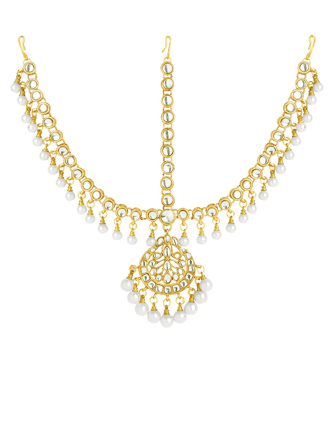 Yellow Chimes Traditional Maang Tikka Gold Plated and Kundan Studded Ethnic Design for Women and Girls