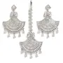 ZENEME Stylish Shiny Round Design Rodhium-Plated Maang Tikka Earring Set Jewellery For Women and Girls