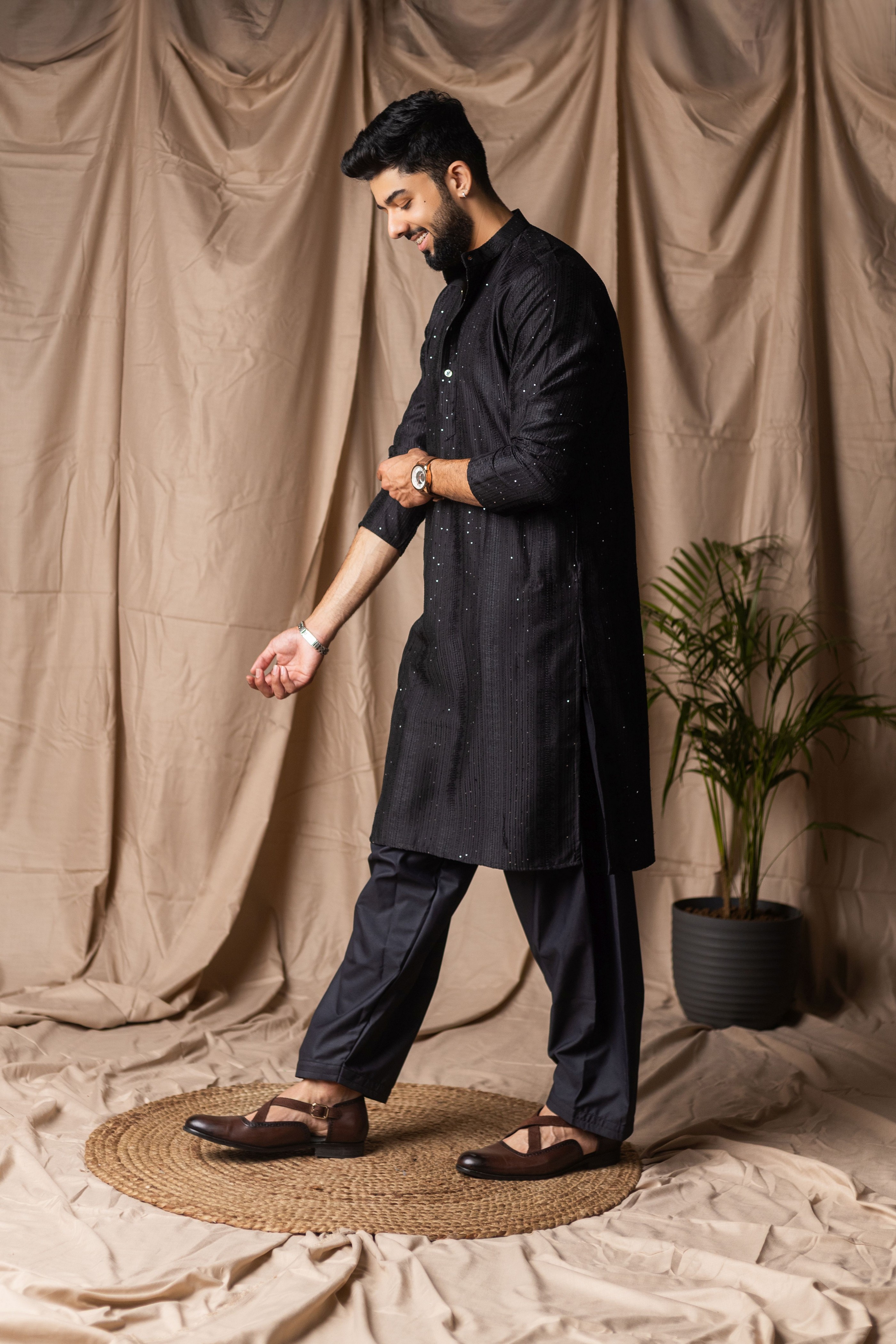 Black Color Rayon Fabric Festive Wear Ethnic Men's Embroidered Kurta Payjama