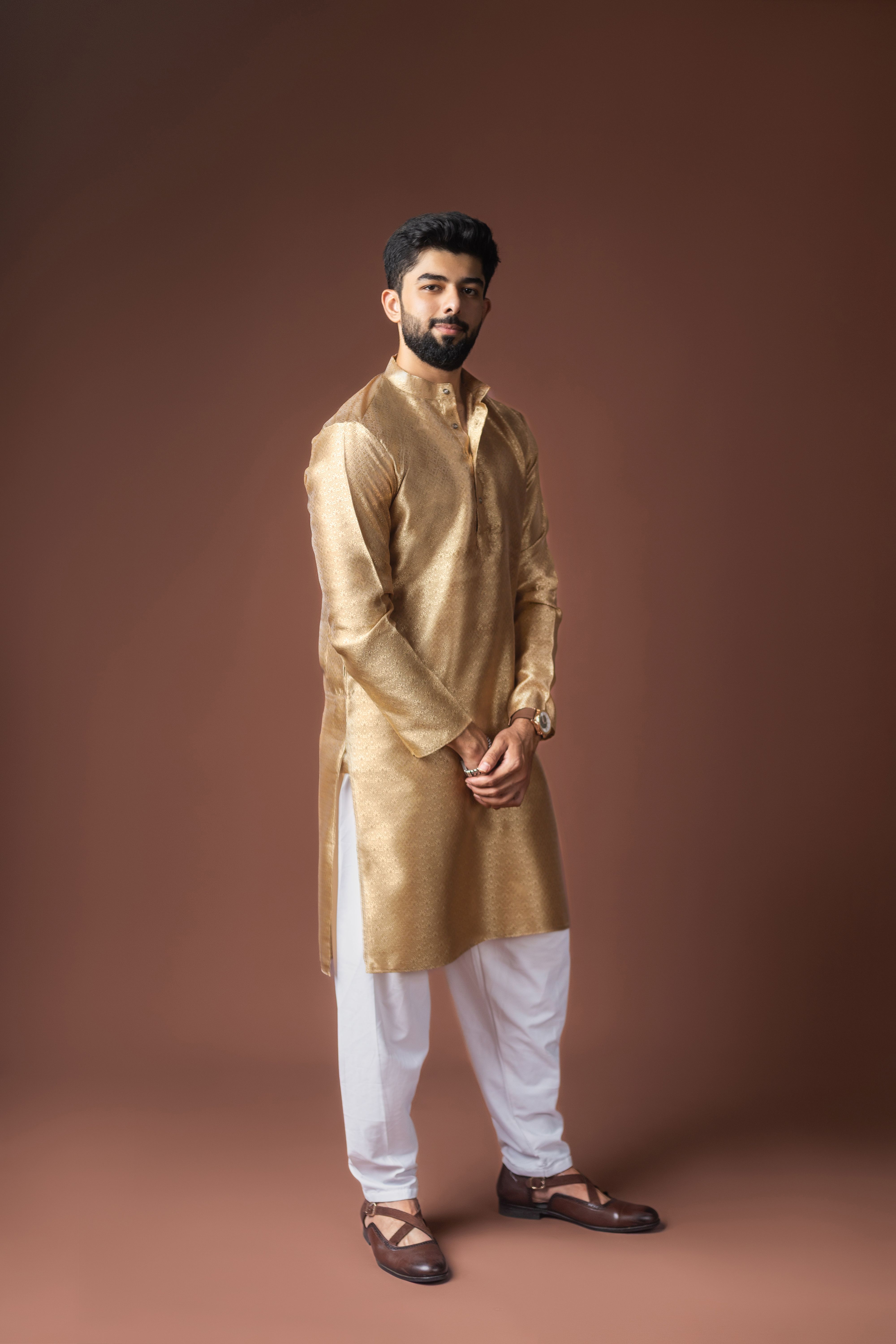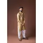 Golden Color Jacquard Designer Ethnic Men's Kurta Payjama For Festive Looks