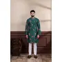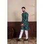 Green Color Ethnic Woven Patta With Digital Printed Ceremonial Kurta Payjama For Men's