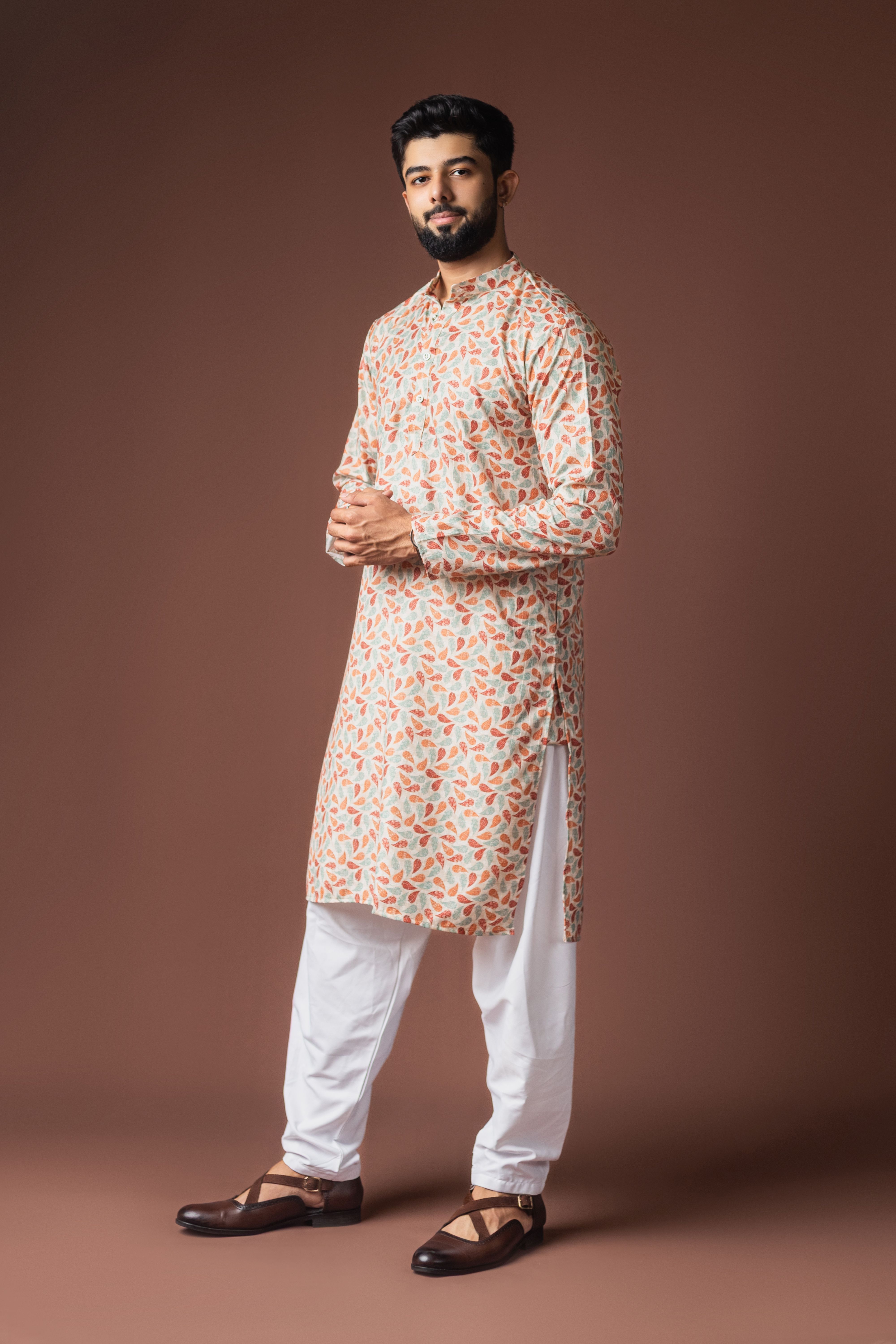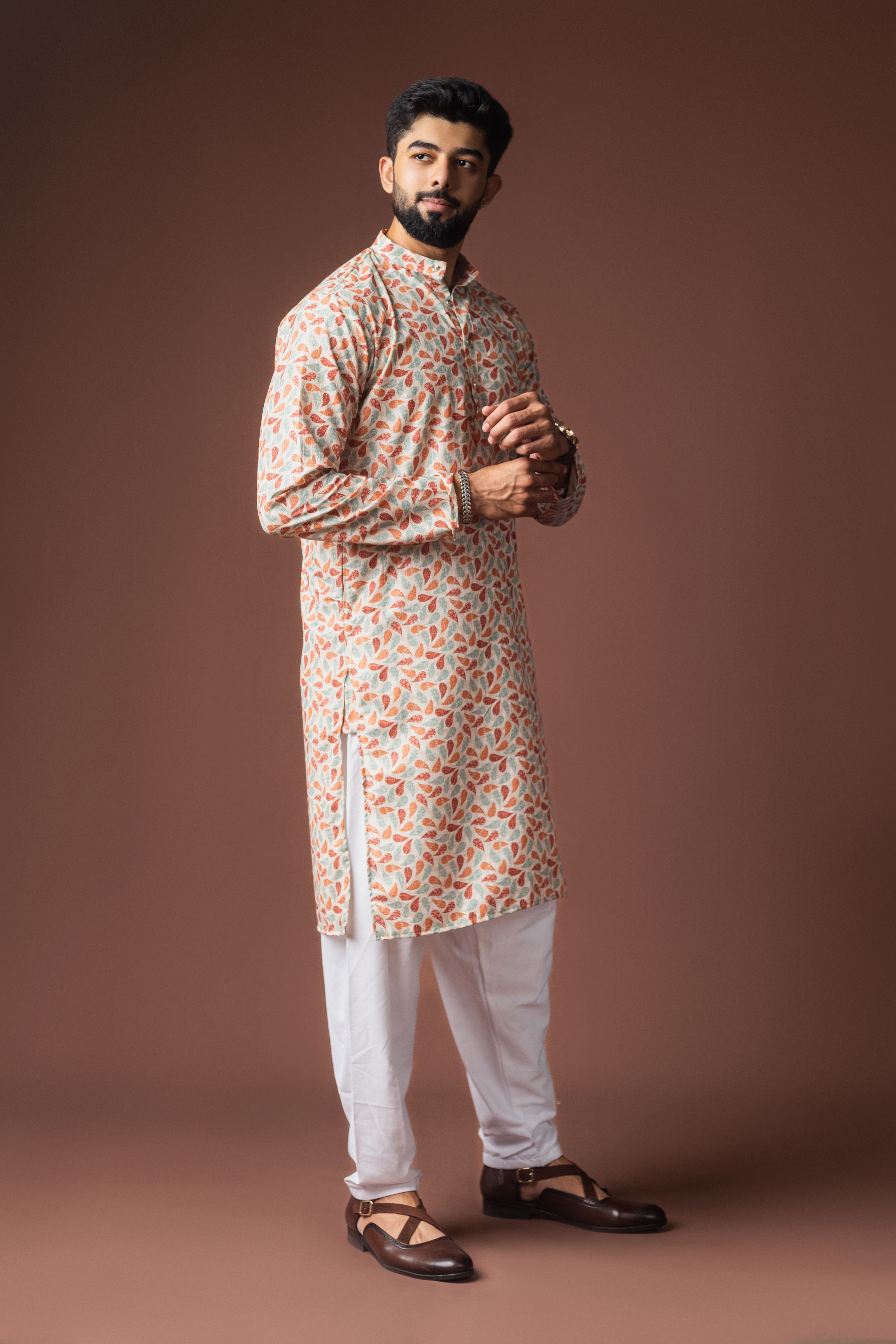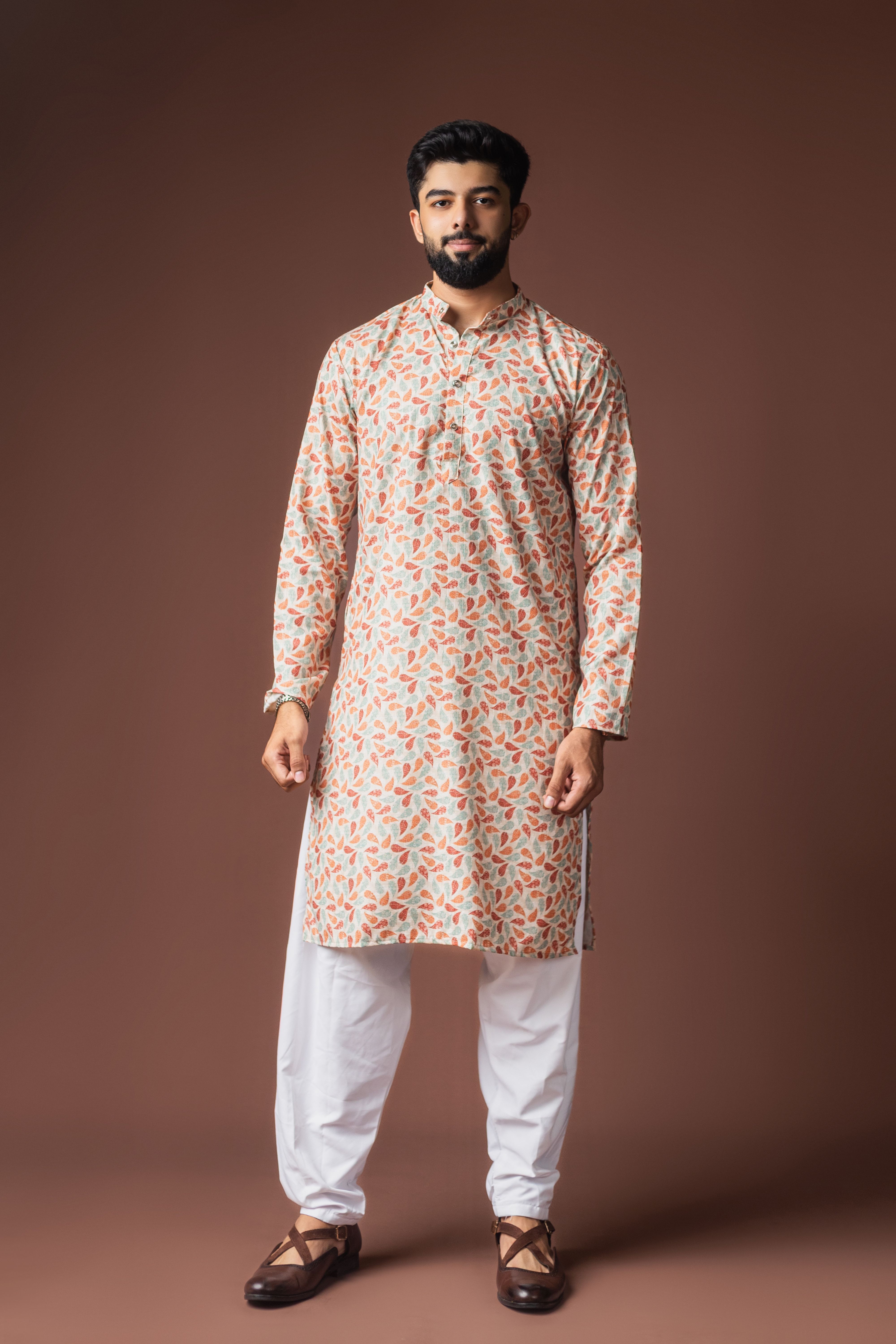 Multy Color Blended Linen Fabric Designer Printed Festive Wear Men's Kurta Payjama
