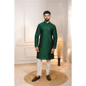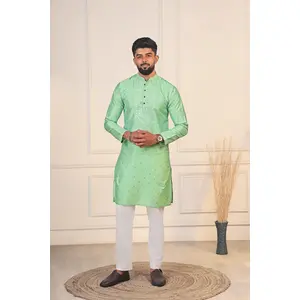 Green Color Jacquard Silk Fabric...