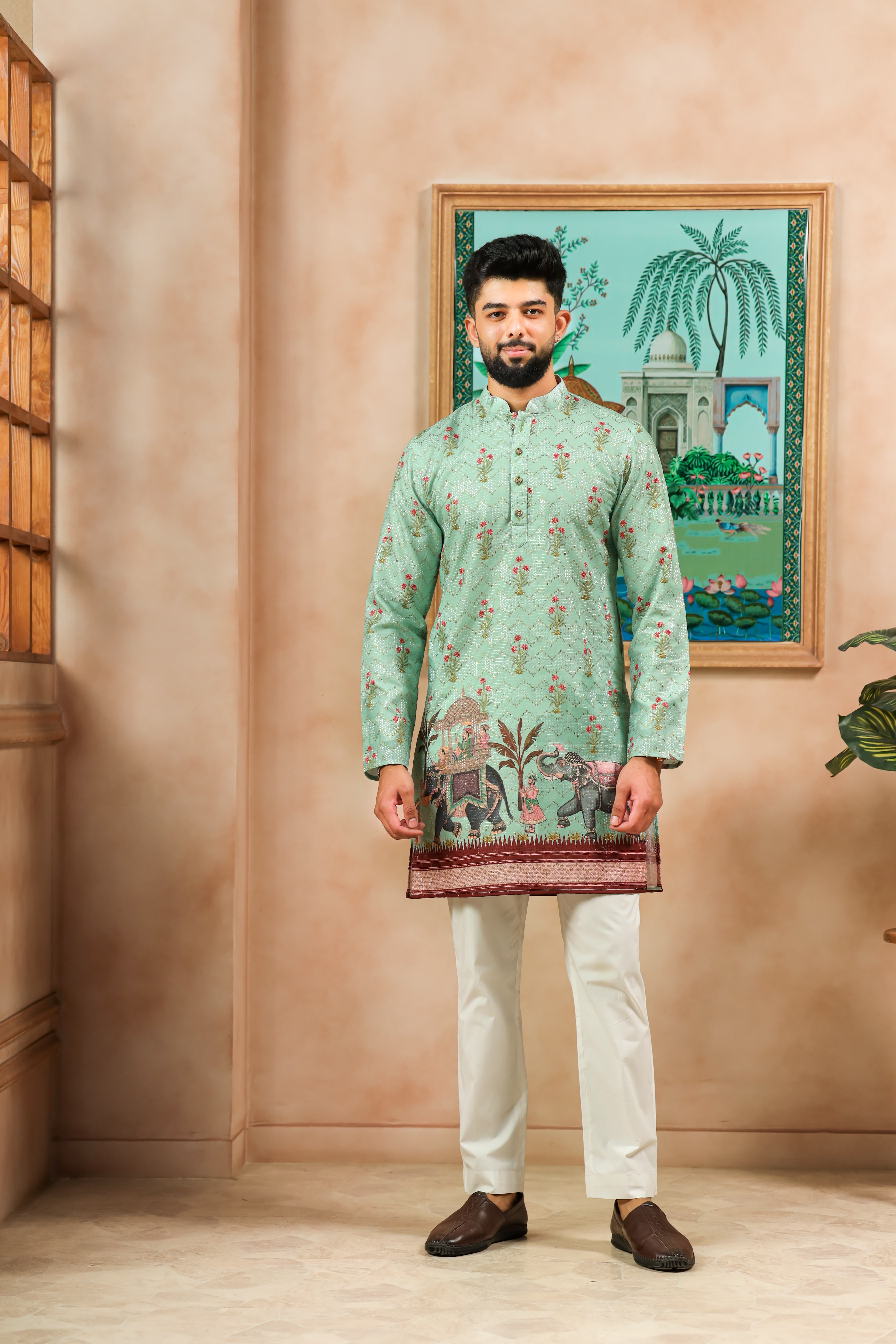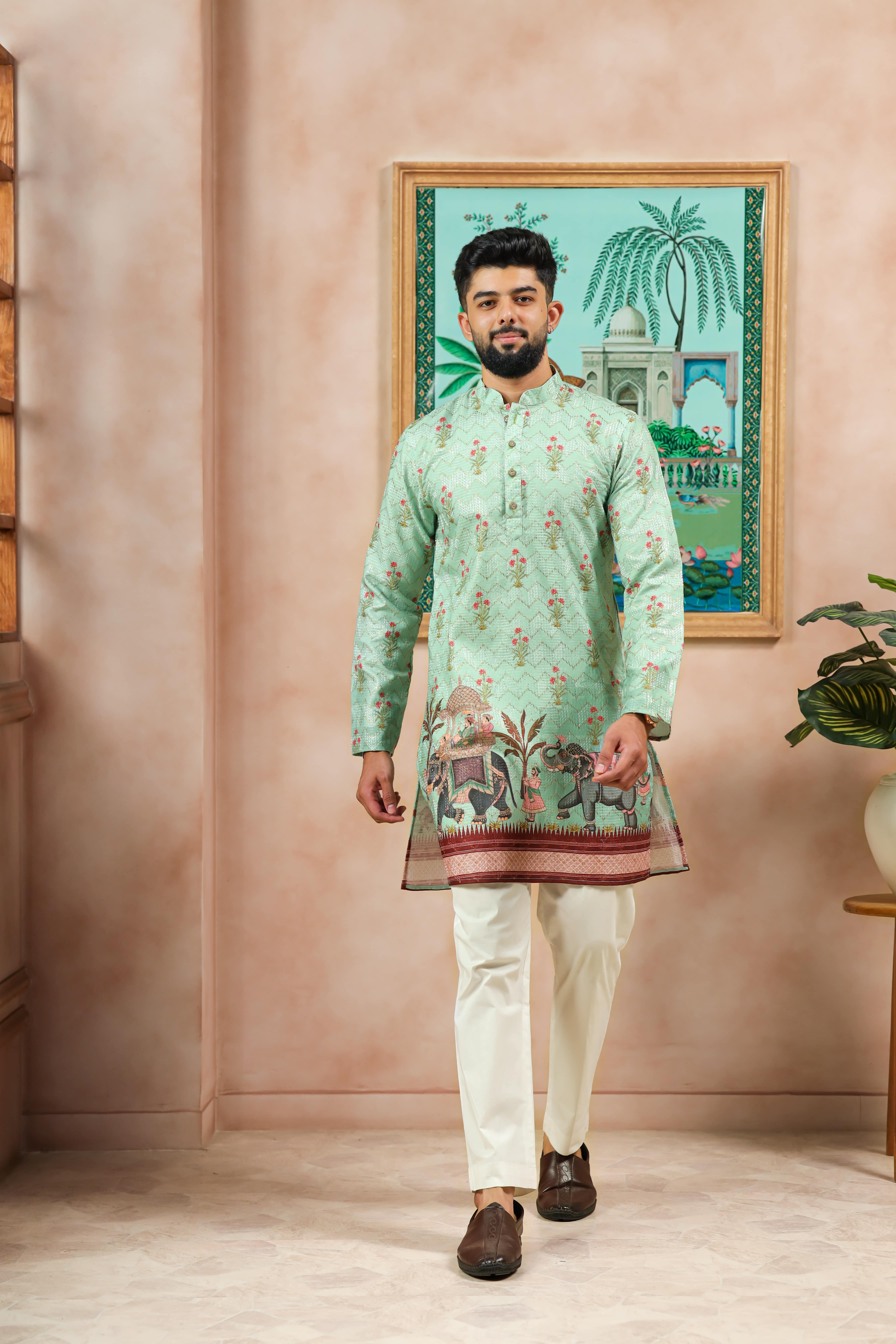 Pista Color Beautiful Blended Cotton Fabric Ceremonial Kurta Pjyama