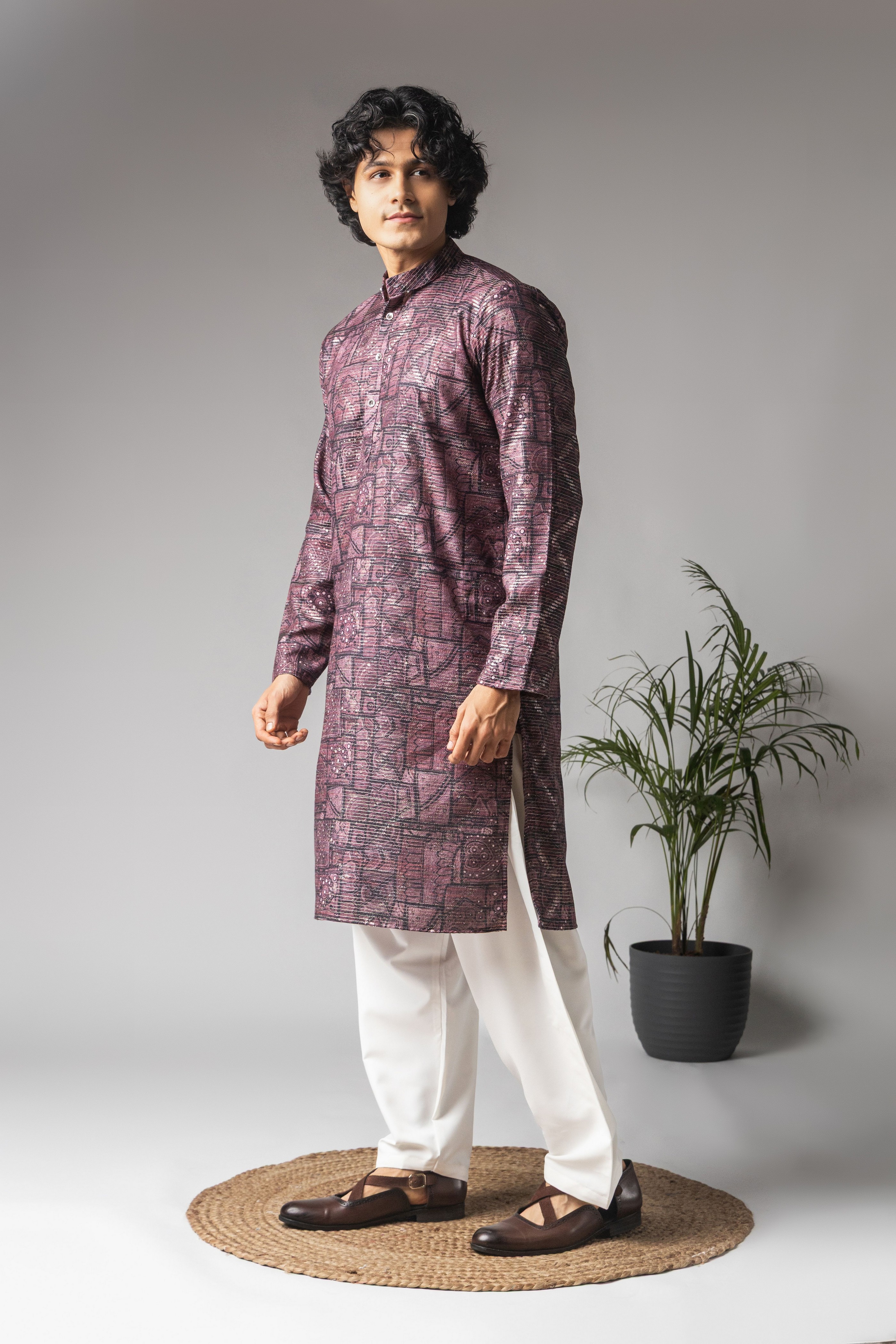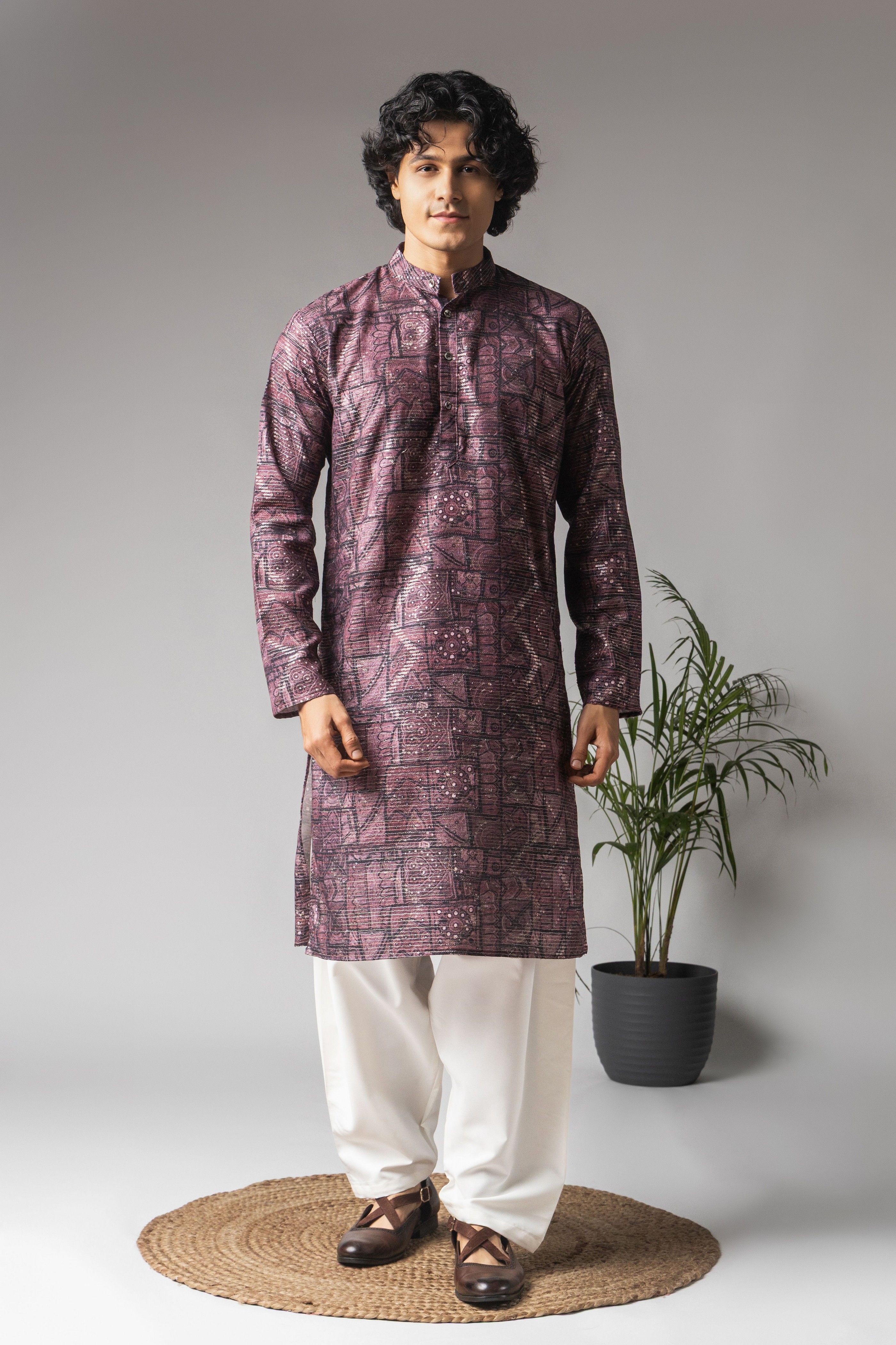 Purple Color Viscose Fabric Designer Ceremonial Kurta Payjama For Men's