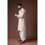 White Color Blended Linen Fabric Designer Printed Festive Wear Men's Kurta Payjama
