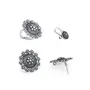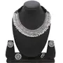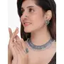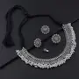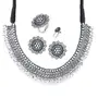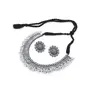 Antique Silver Oxidized Ethnic Indian Traditional Leaf Charm Pink Thread Neck Dori Necklace Earrings Jewelry Set