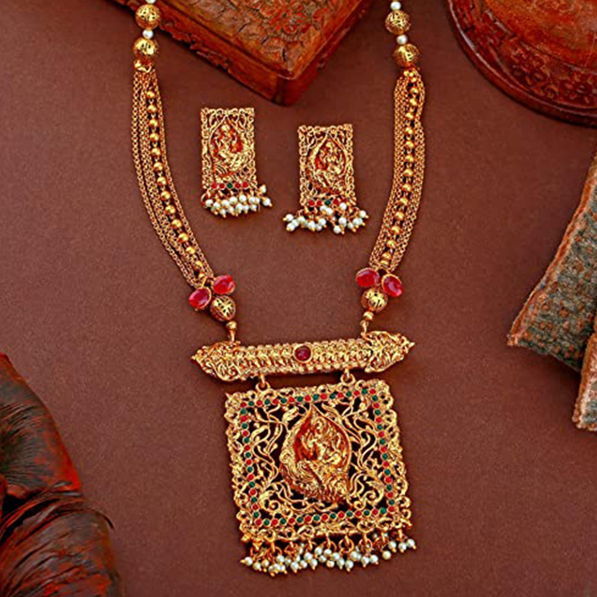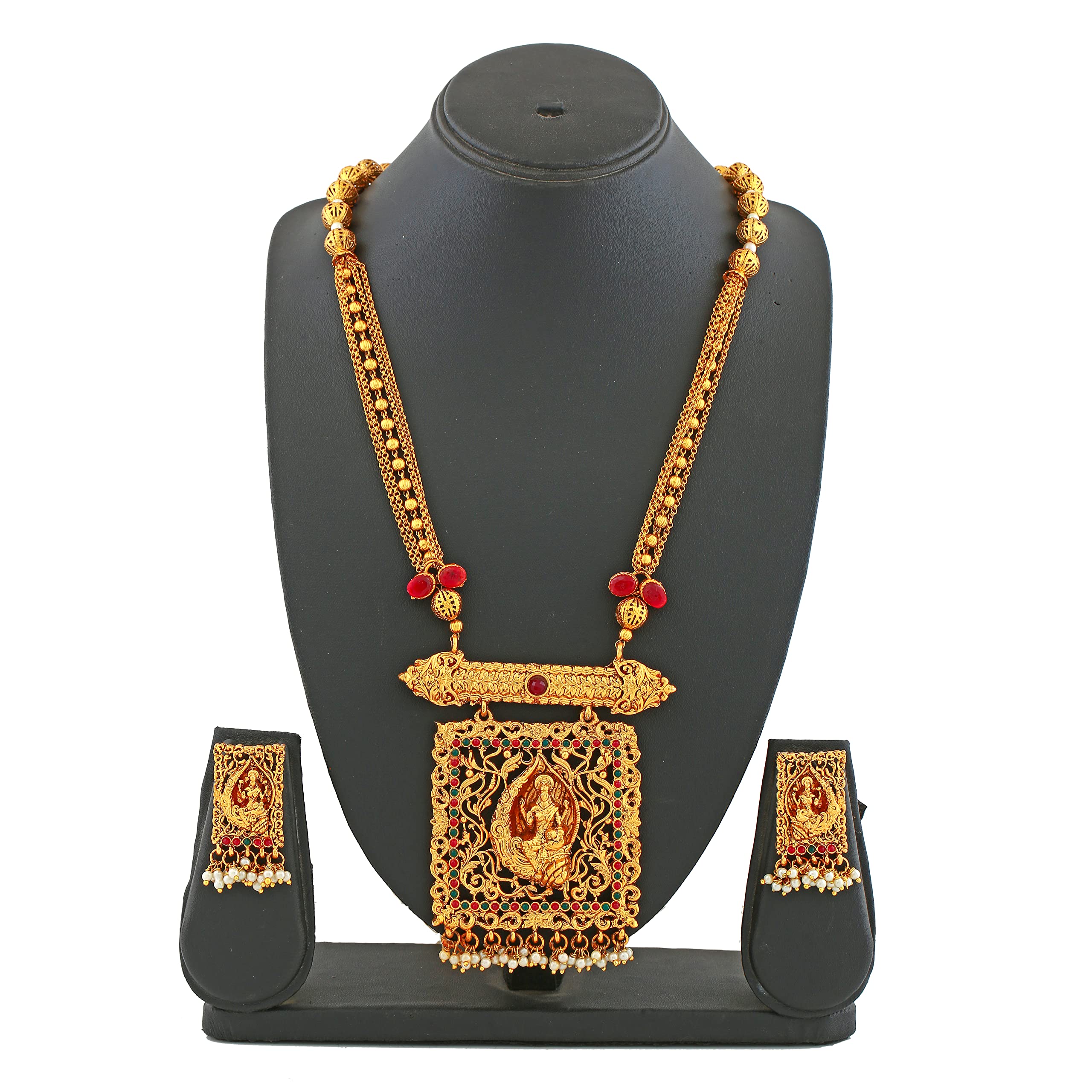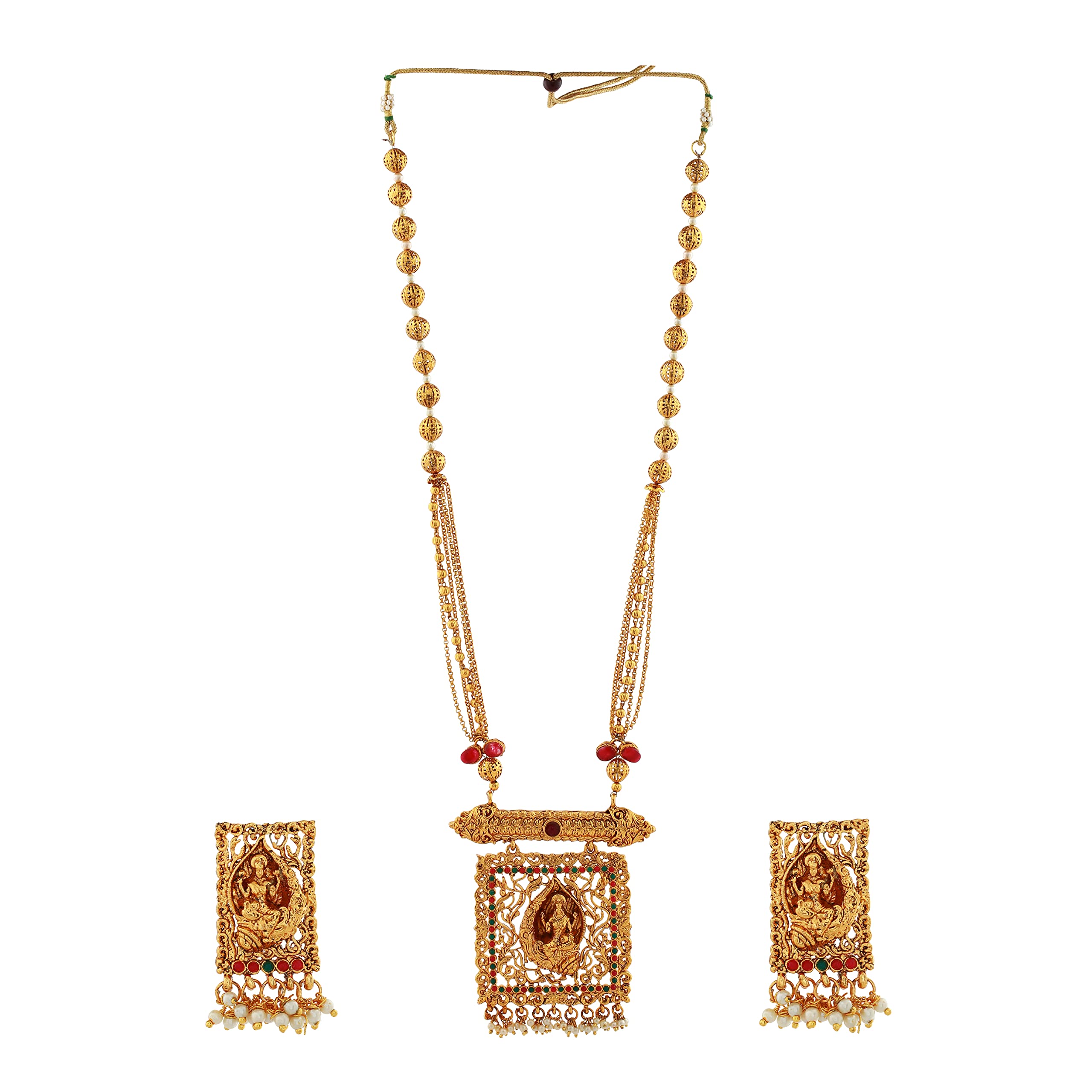 Estele Gold Tone Traditional Lakshmi Devi Designer Necklace Set with Pearls for Women