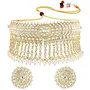 I Jewels 18K Gold Plated Indian Wedding Bollywood Kundan & Pearl Studded Choker Necklace Jewellery Set For Women/Girls (K7210-1)