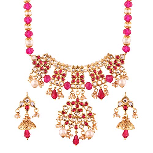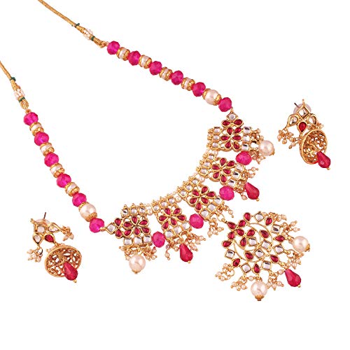 HomeFashionNecklaceI Jewels Gold Plated Indian Bollywood Traditional Kundan & Pearl Studded Choker Necklace Jewellery Set with Earrings for Women (K7067Q)