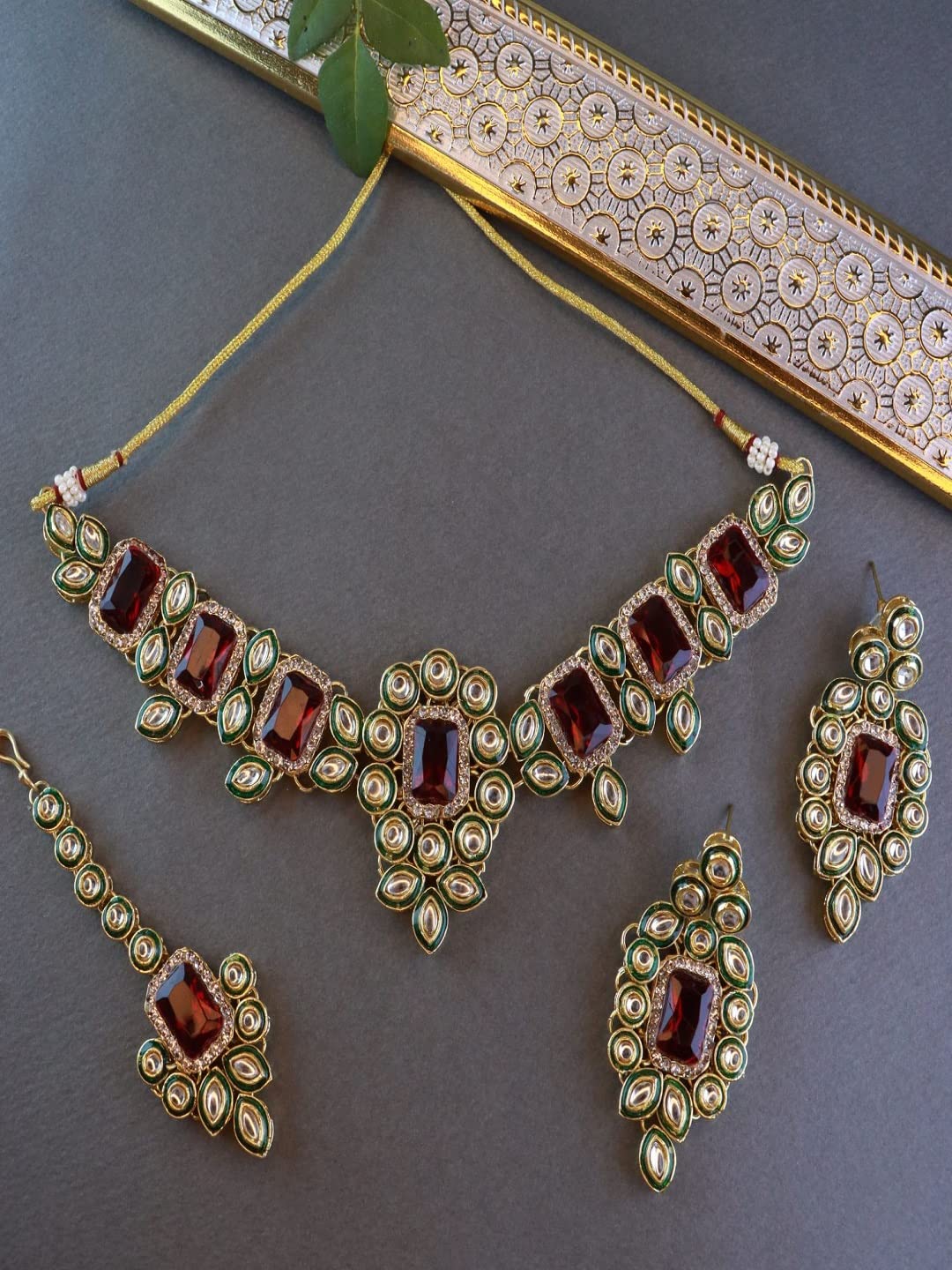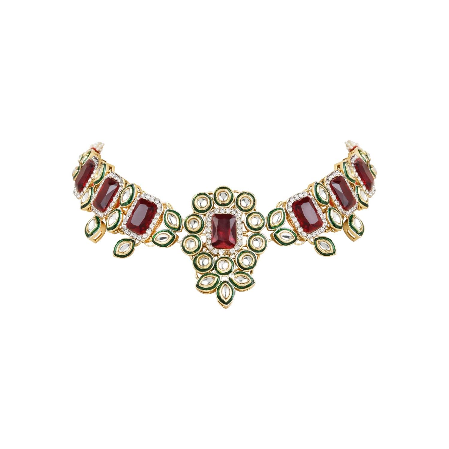 HomeFashionNecklaceI Jewels Gold Plated Indian Wedding Bollywood Kundan & Stone Studded Choker Necklace Jewellery with Earrings & Maang Tikka Set for Women