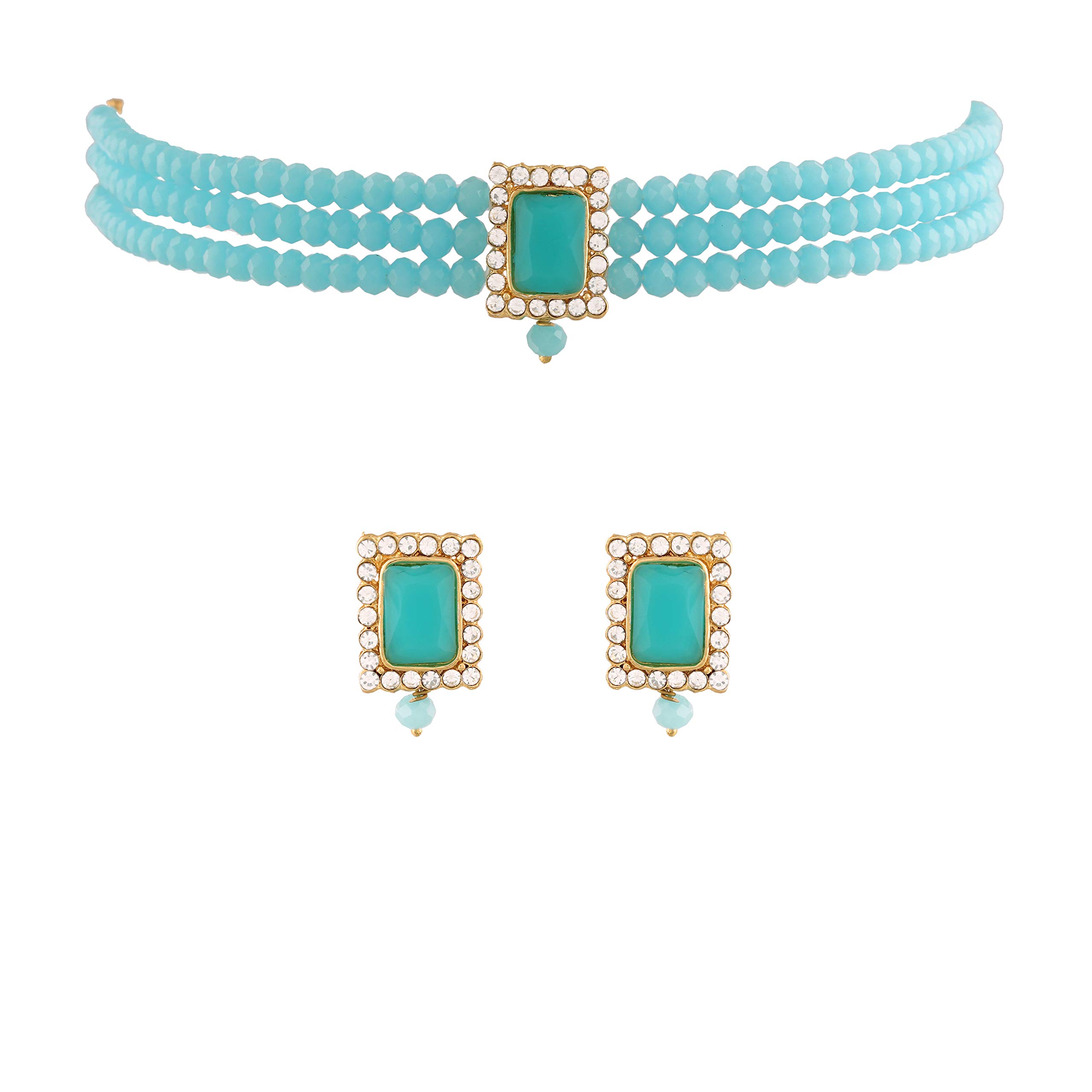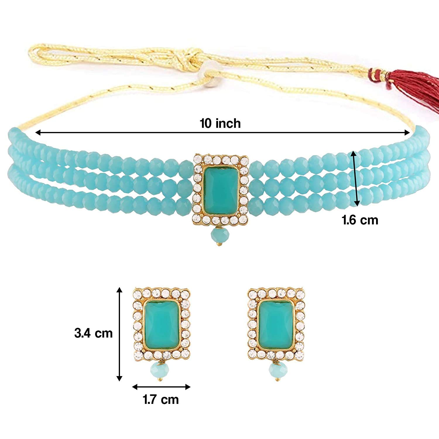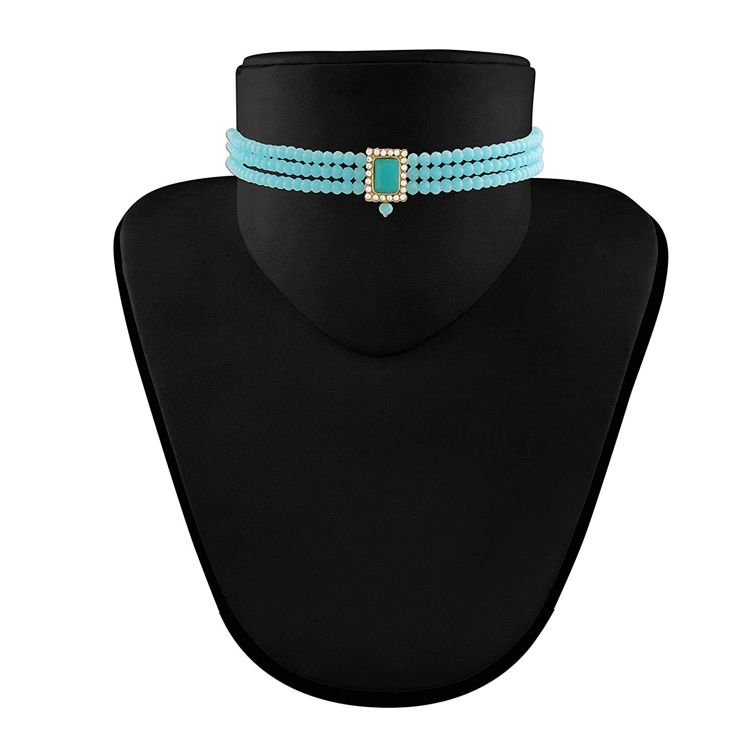 I Jewels Gold Plated Indian Wedding Bollywood Stone Pearl Choker Necklace Mother's Day Jewellery Set For Women (Sky blue)