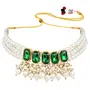 I Jewels Gold Plated Indian Wedding Bollywood Stone studed Pearl Choker Necklace Jewellery Set with Earrings for Women (IJ355)