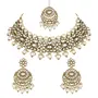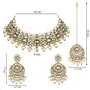 I Jewels Gold Plated Traditional Floral Kundan Pearl Choker Necklace Jewelry Earrings & Maang tikka Set For Women/Girls (white)