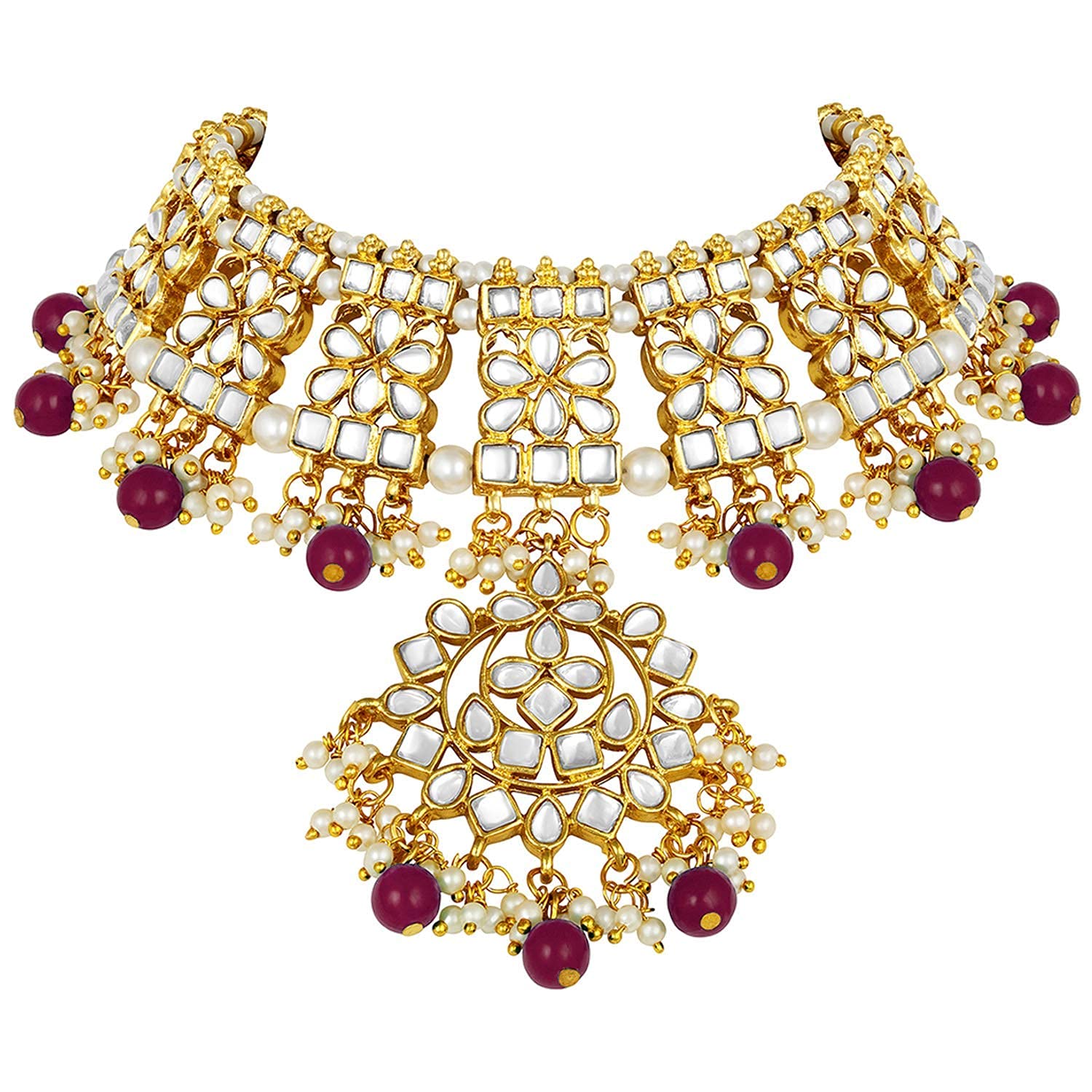 HomeFashionNecklaceI Jewels Indian Traditional Kundan Choker Ethnic Bollywood Designer Stylish Party Wear Jewelry Set with Earrings & Maang Tikka for Women