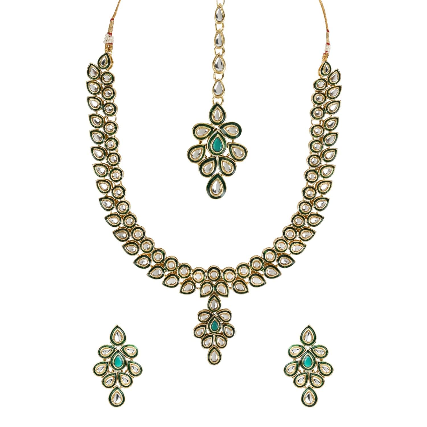 HomeFashionNecklaceI Jewels Indian Wedding Bollywood Gold Plated Traditional Maroon Meenakari Handcrafted Kundan Necklace With Dangle Earrings & Maang Tikka Jewellery Set For Women (IJ356)