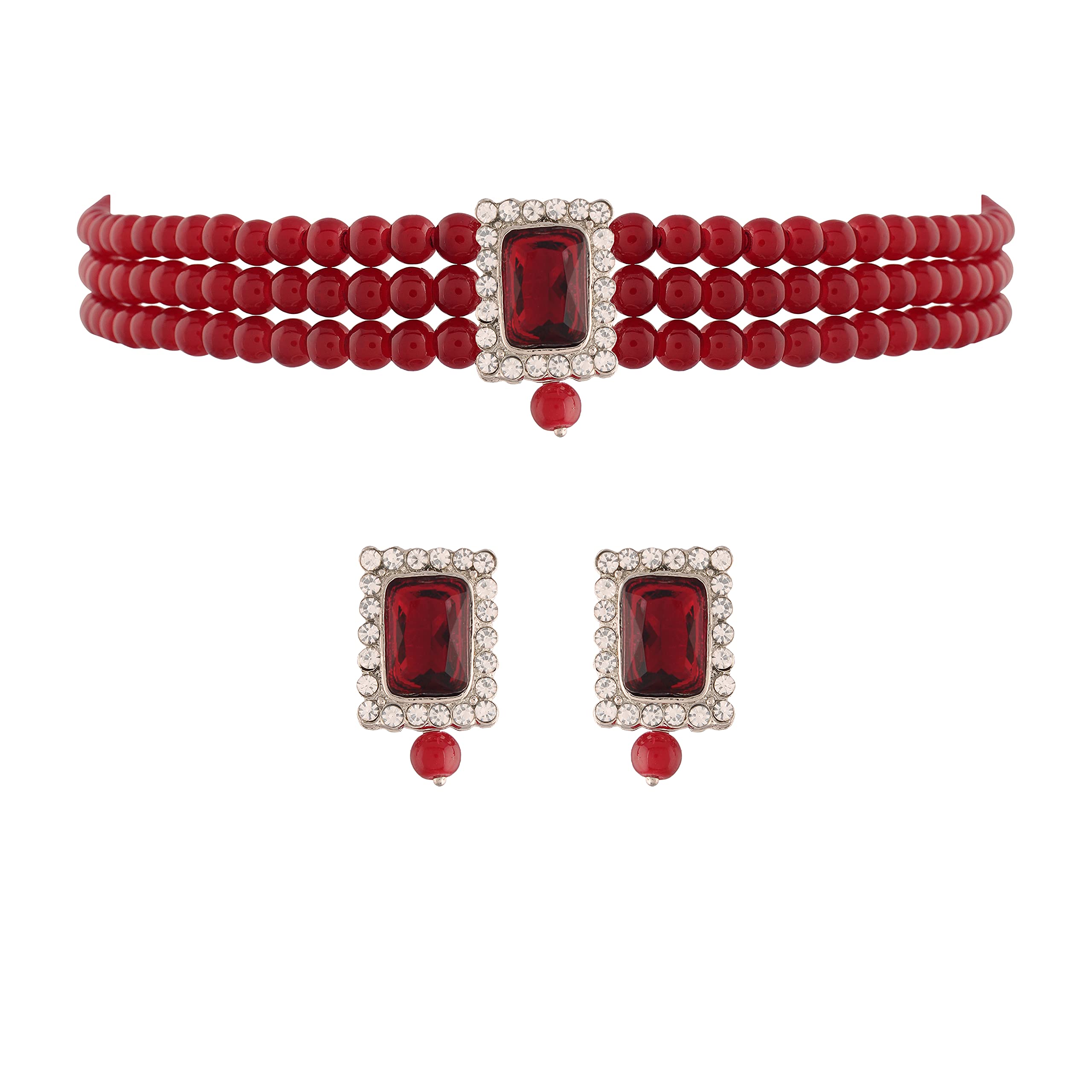 HomeFashionNecklaceI Jewels Valentines Day Gifts For Her Gold Plated Indian Wedding Bollywood Stone Pearl Choker Necklace Mother's Day Jewellery Set For Women/Girls (Silver+Maroon)